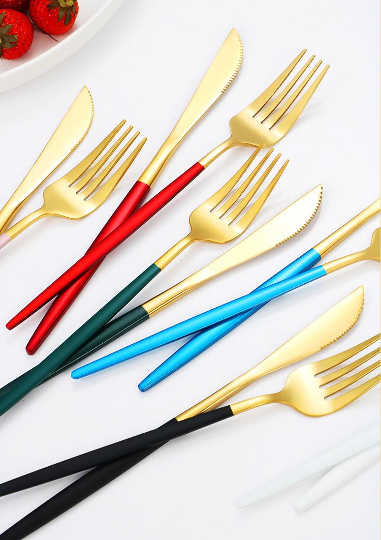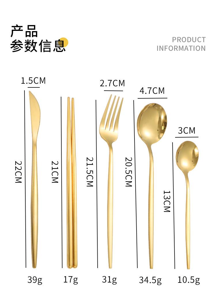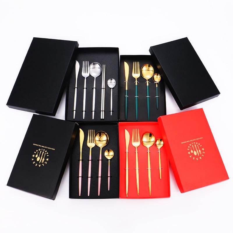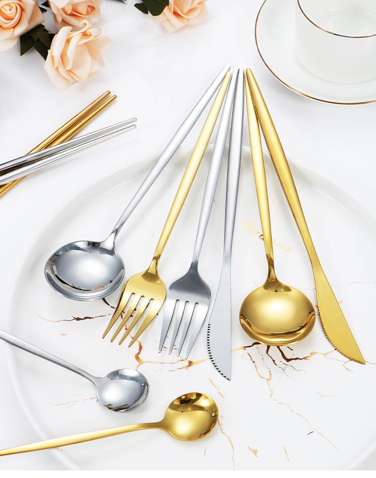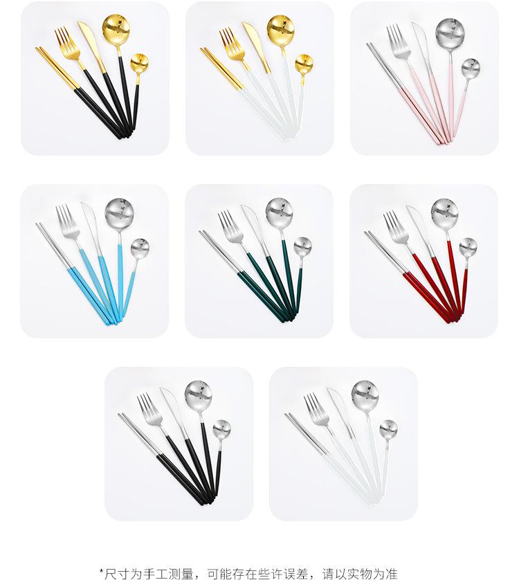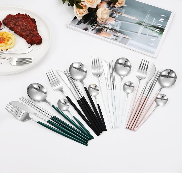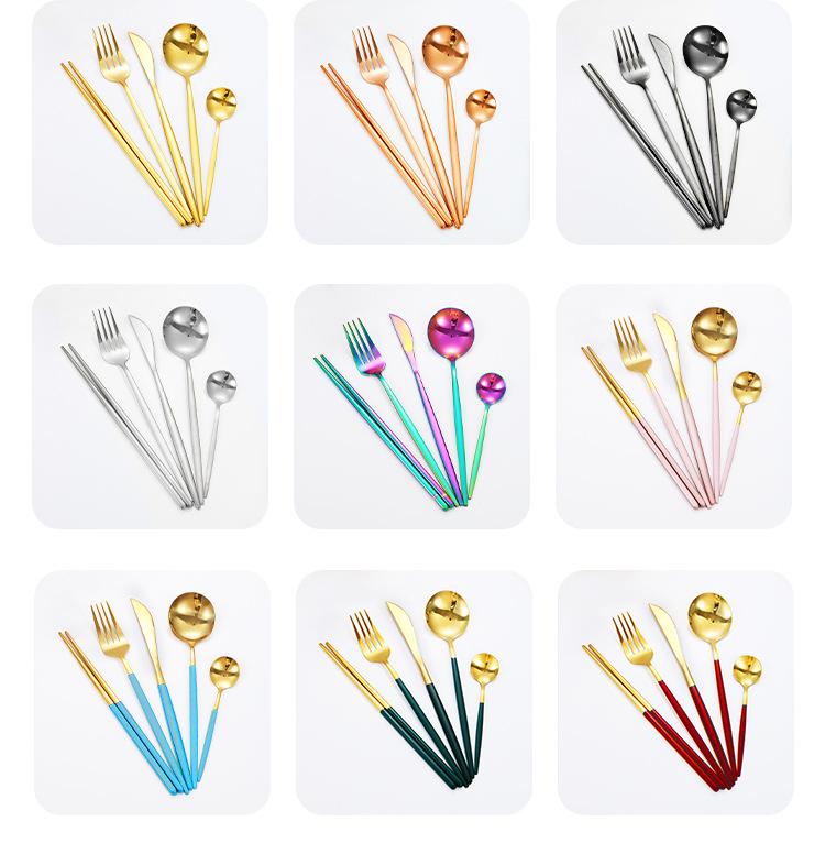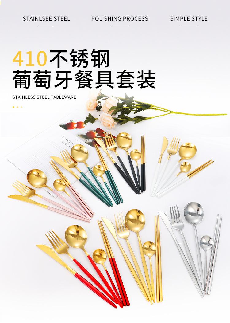 Vajilla Transfronteriza de Nuevo Estilo Delgada Creativa Portuguesa de Acero Inoxidable para el Hogar Occidental Cuchillo para Bistec, Tenedor y Cuchara Palillos Juego de 5 piezas