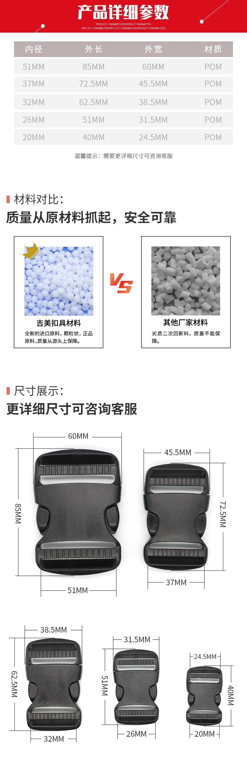 Accesorios tácticos de fábrica, hebilla de plástico para equipaje, hebilla de plástico, hebilla de plástico de doble tirador, hebilla táctica para mochila escolar.