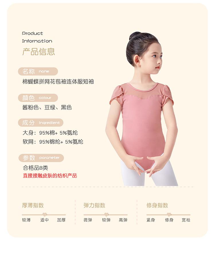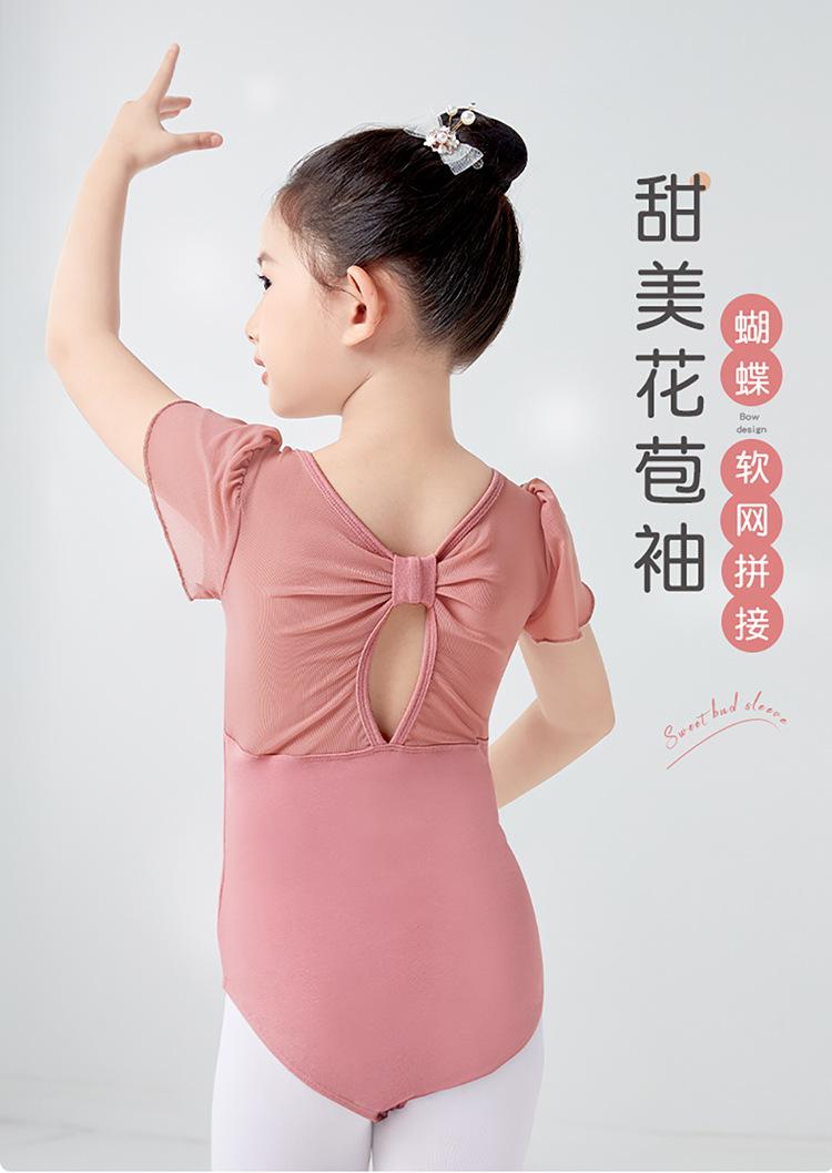 Ropa de Práctica de Danza para Niños Ropa de Gimnasia con Lazo de Ballet para Niñas Ropa de Gimnasia para Mujeres Prueba de Arte Nueva Ropa Moldeada de Manga Corta Ropa de Danza