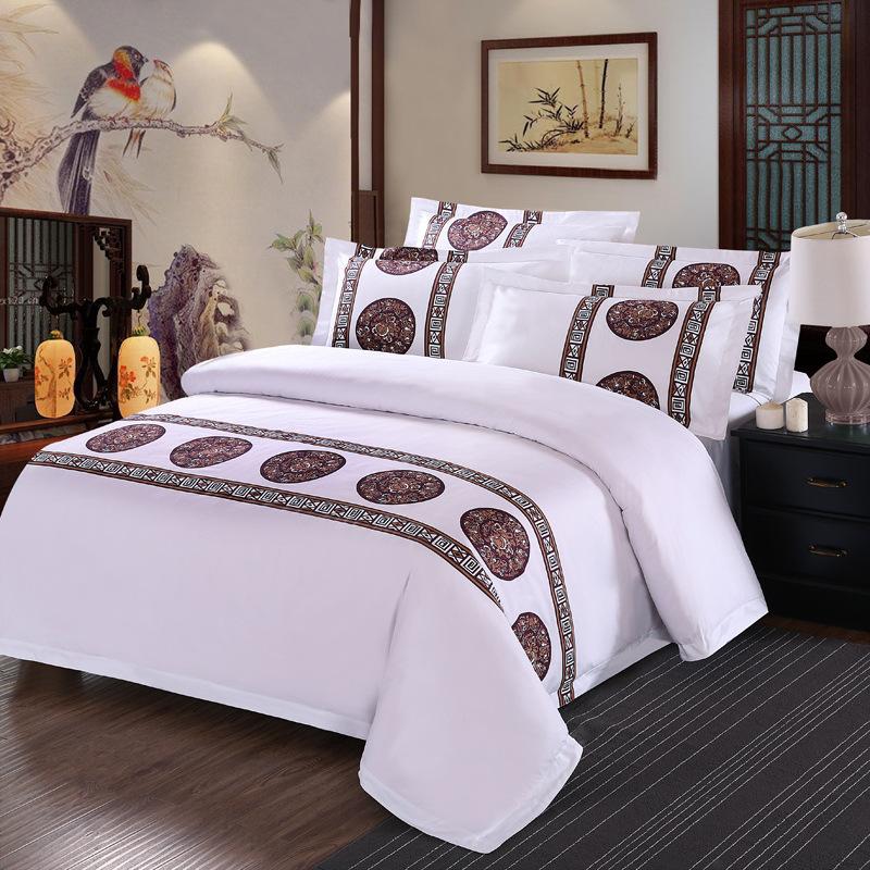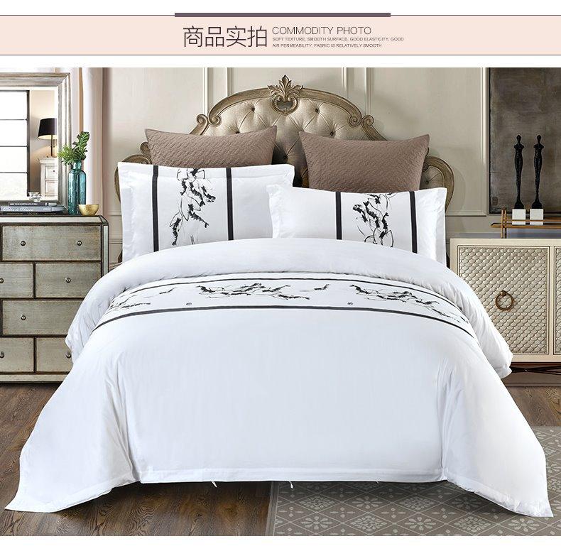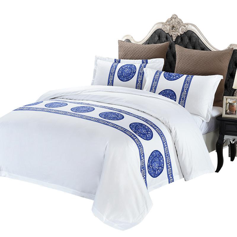 Ropa de cama de hotel hotel de estancia en casa ropa de cama estampado satén algodón juego de cuatro piezas fabricantes mayoreo personalizado