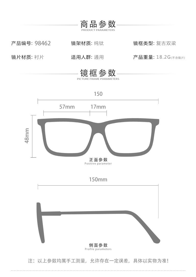 Lentes Danyang Nuevo Armazón de Titanio Puro Lentes Retro de Doble Puente para Miopía Lentes Planos Venta al Por Mayor 98462