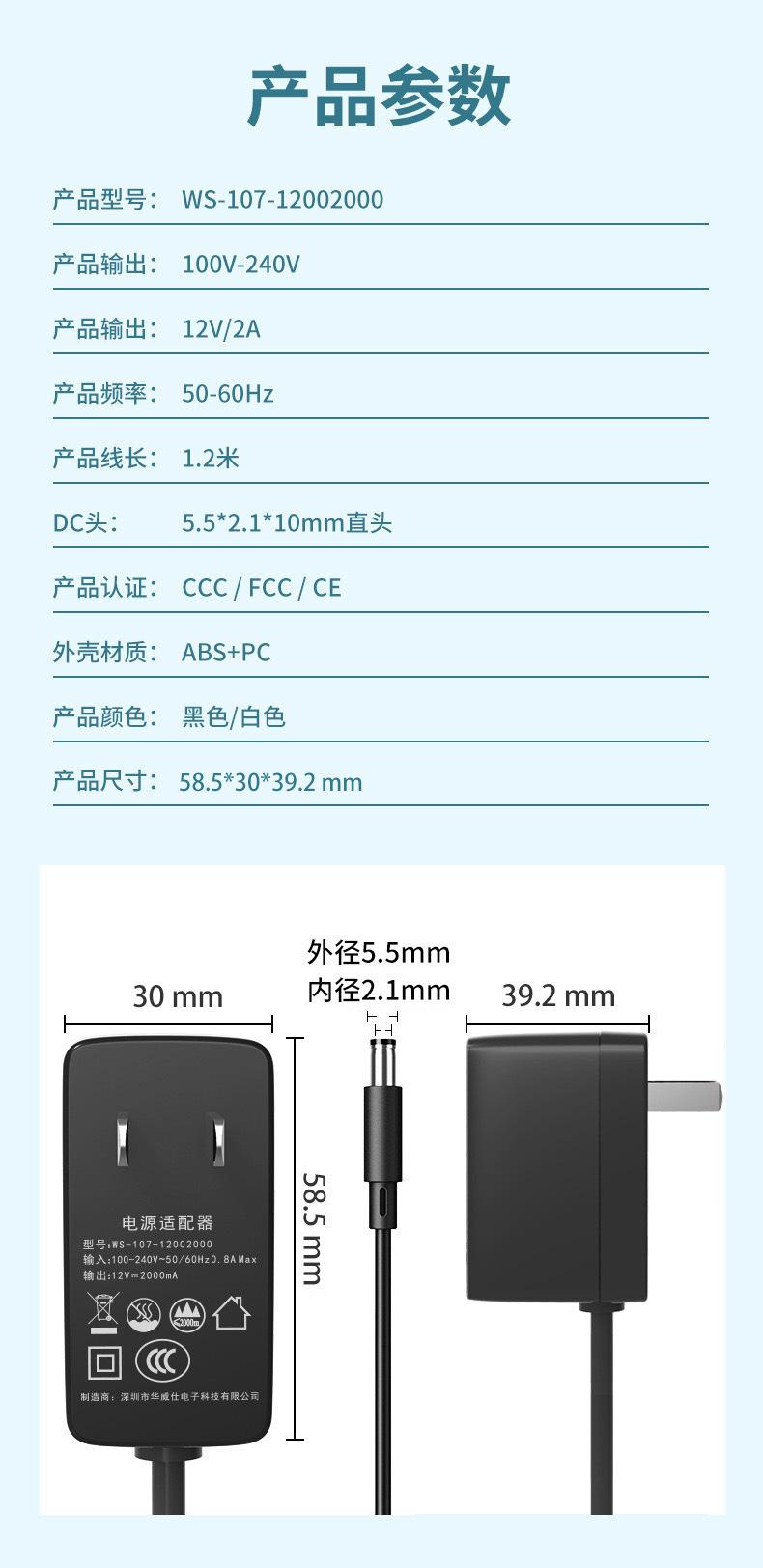 9V2A, 9V2.5A, 12V1A, 12V2A, 24V1A