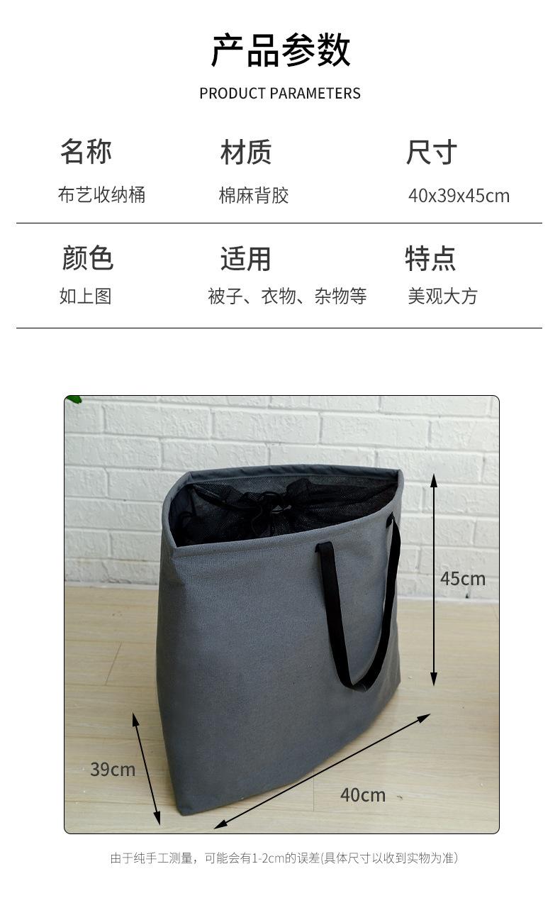Cesta de lavandería de lino y algodón para el hogar, cesta de almacenamiento de tela plegable, cesta de almacenamiento de juguetes para ropa sucia
