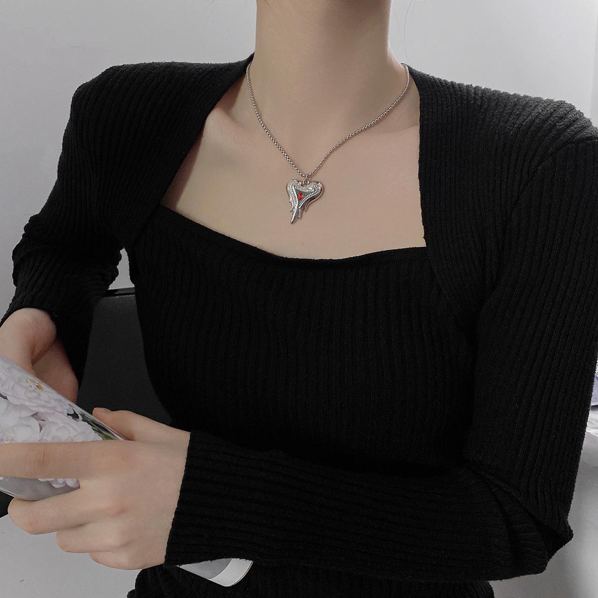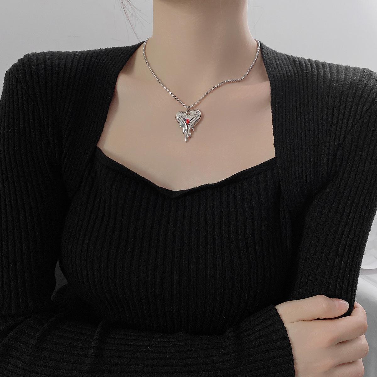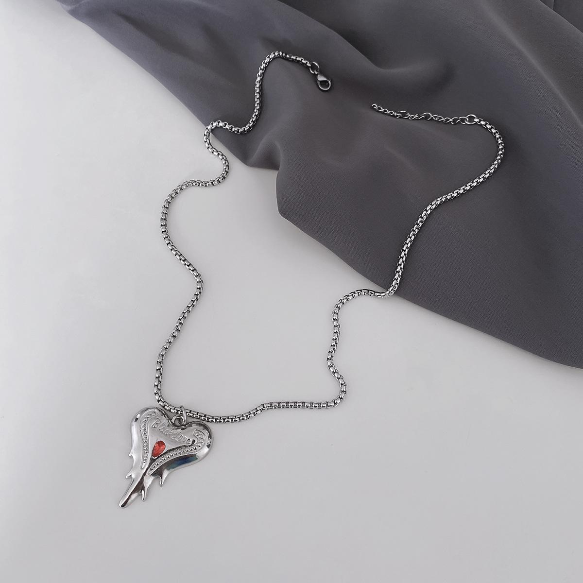 Collar de Acero de Titanio con Corazón Irregular Simple de Moda Estilo Europeo y Americano Ins Minimalista Letra Corazón Colgante Cadena Clavícula