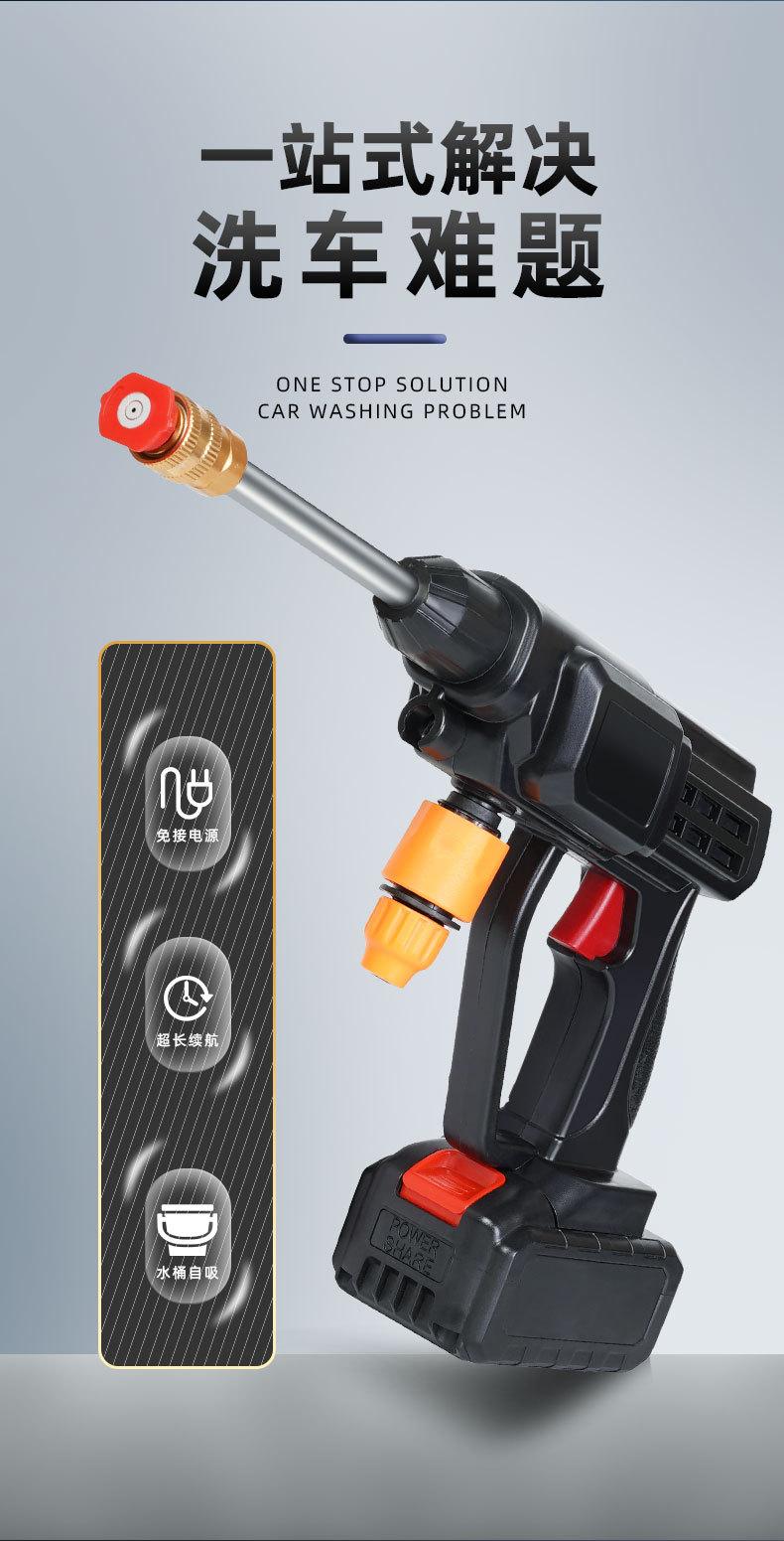 Compra Nueva pistola de agua inalámbrica de alta presión para lavado de autos, artefacto eléctrico de litio para lavado de autos de uso doméstico, venta al por mayor directa de fábrica, máquina para lavar autos al por mayor en Joom.pro