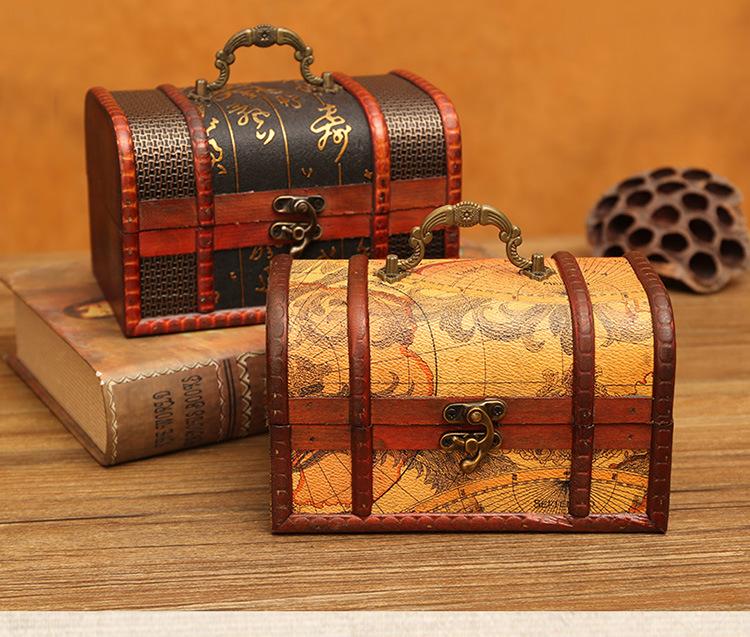 Caja de Madera Pequeña Retro al Por Mayor de Comercio Exterior con Cerradura Caja de Almacenamiento de Madera Caja de Almacenamiento de Cosméticos de Escritorio Caja de Joyería Caja de Atrezzo