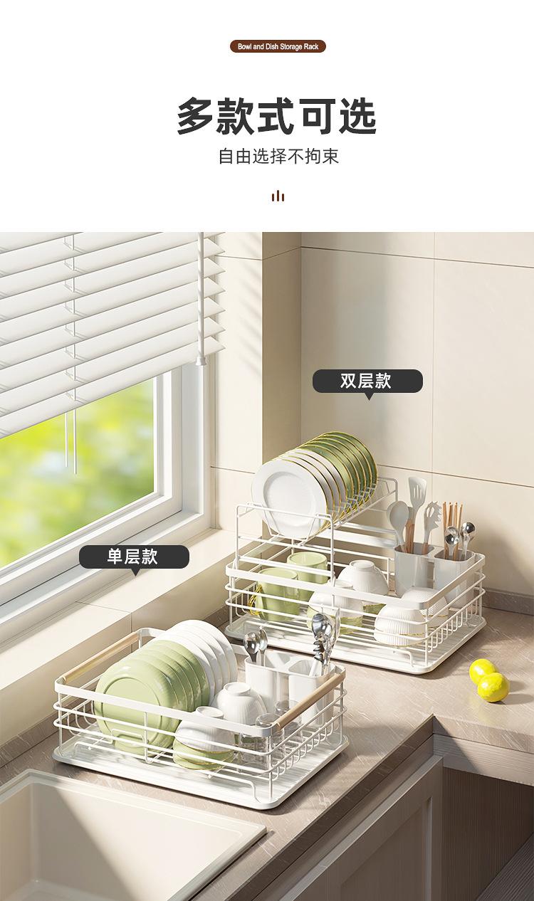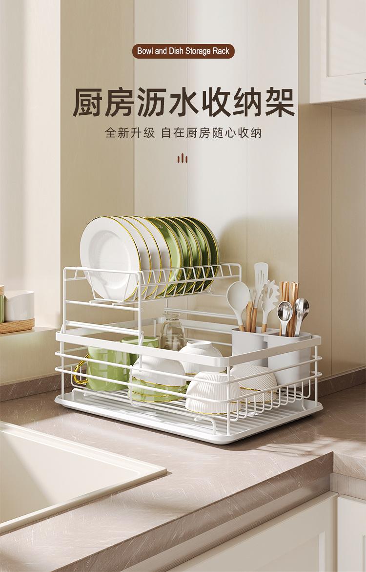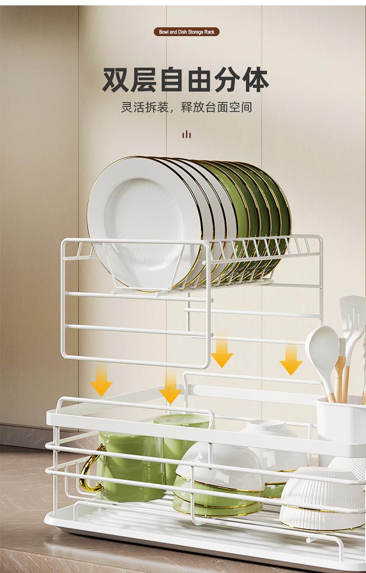 Popular Estante de Almacenamiento de Cocina Transfronterizo Multifuncional para Almacenamiento de Vajilla Escurridor de Platos Metal Engrosado Doble Capa Escurridor para Fregadero
