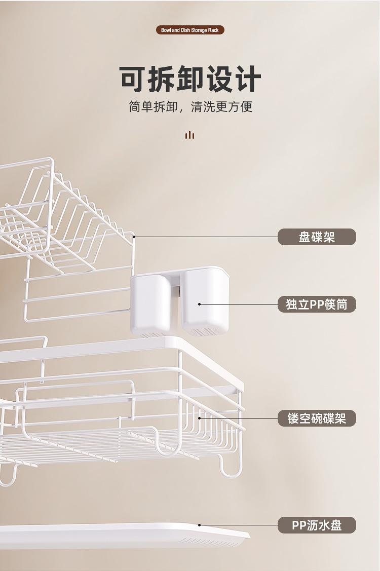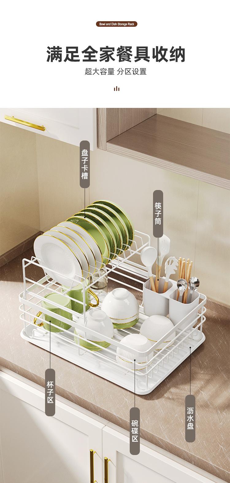 Assembled white dish rack [with cup holder + chopstick cage + water tray]