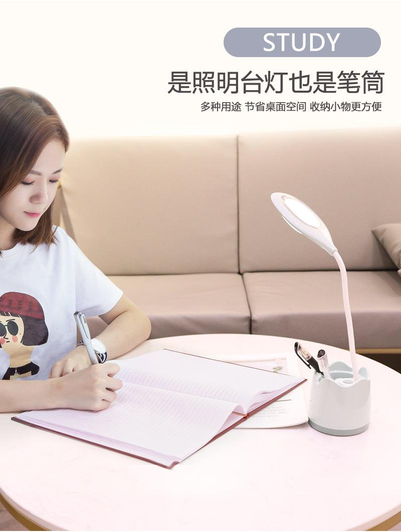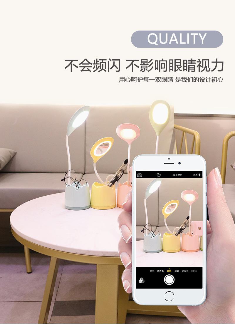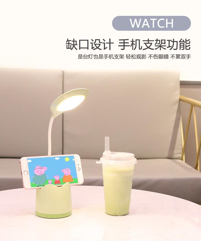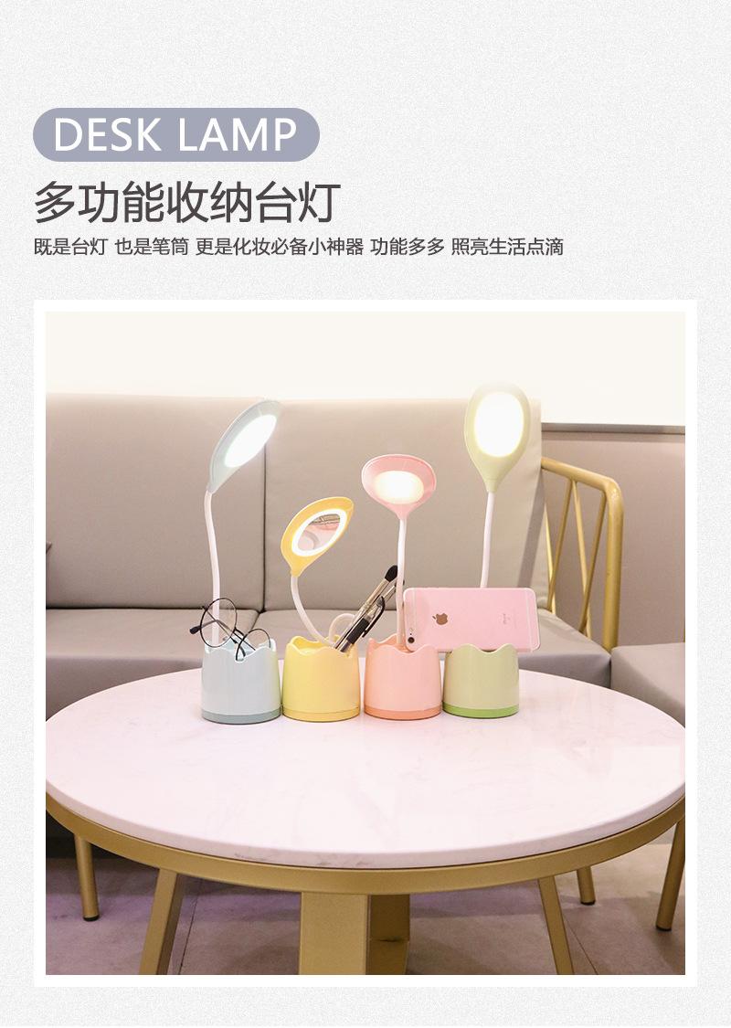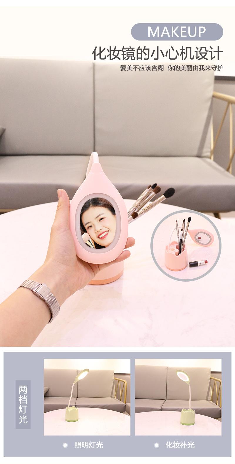 Lámpara de escritorio de almacenamiento multifuncional, lámpara de escritorio de estudio para dormitorio de estudiantes con portalápices, espejo de maquillaje para dormitorio con soporte para teléfono móvil, lámpara de escritorio