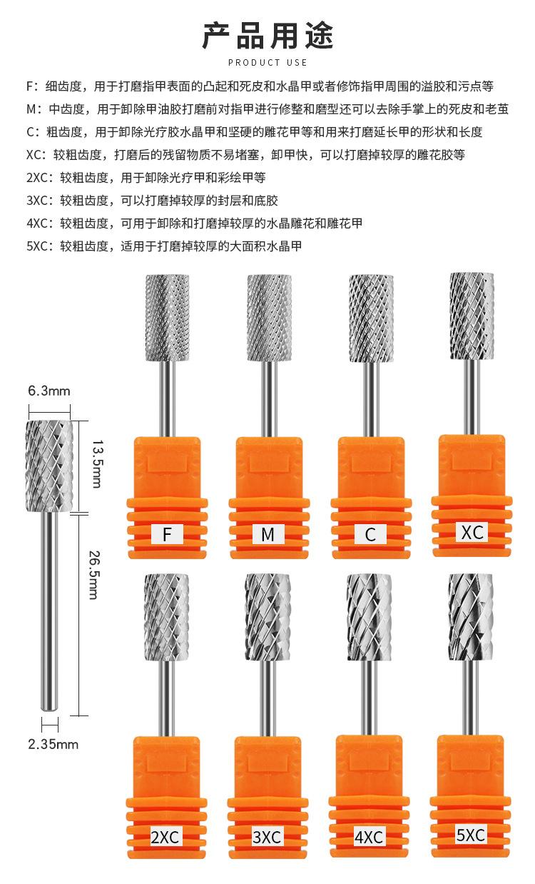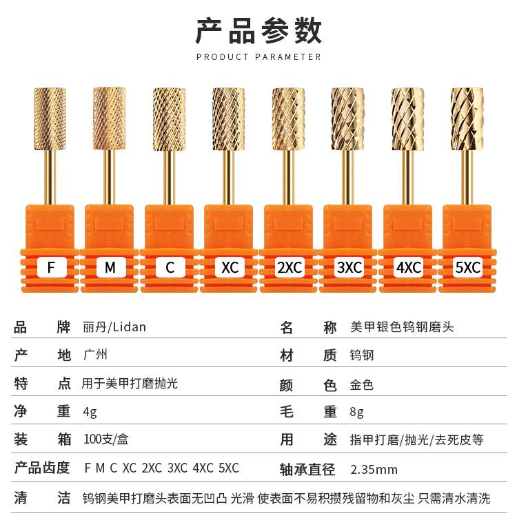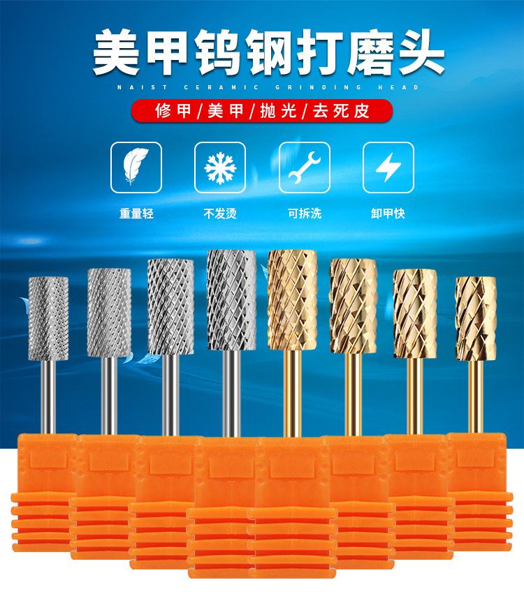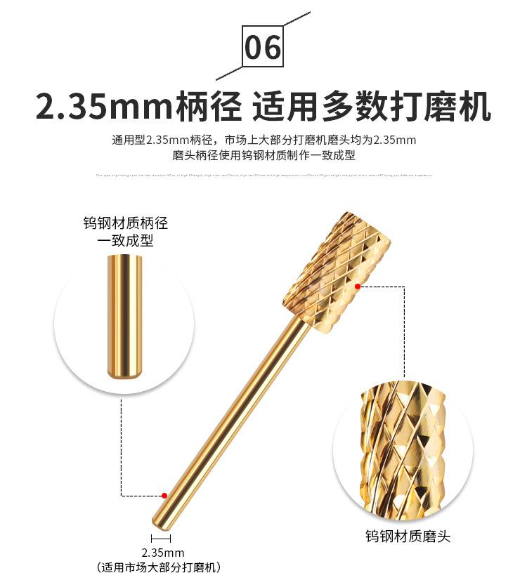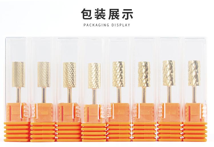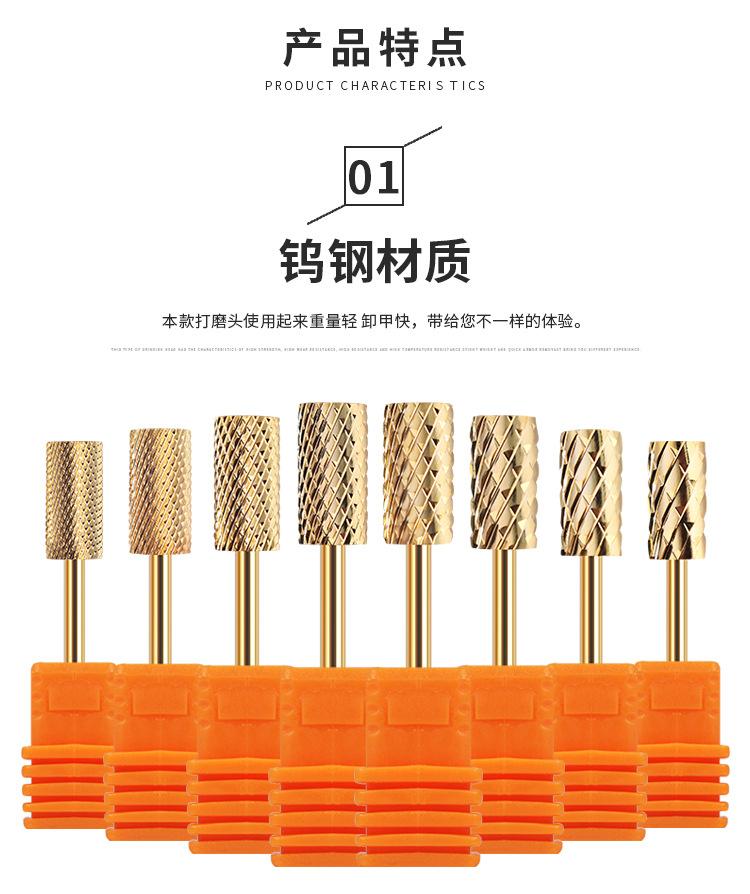 Nail polishing head, polishing and nail removal, single cylindrical golden tungsten steel polishing head, manicure tool