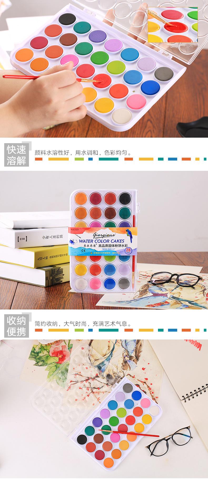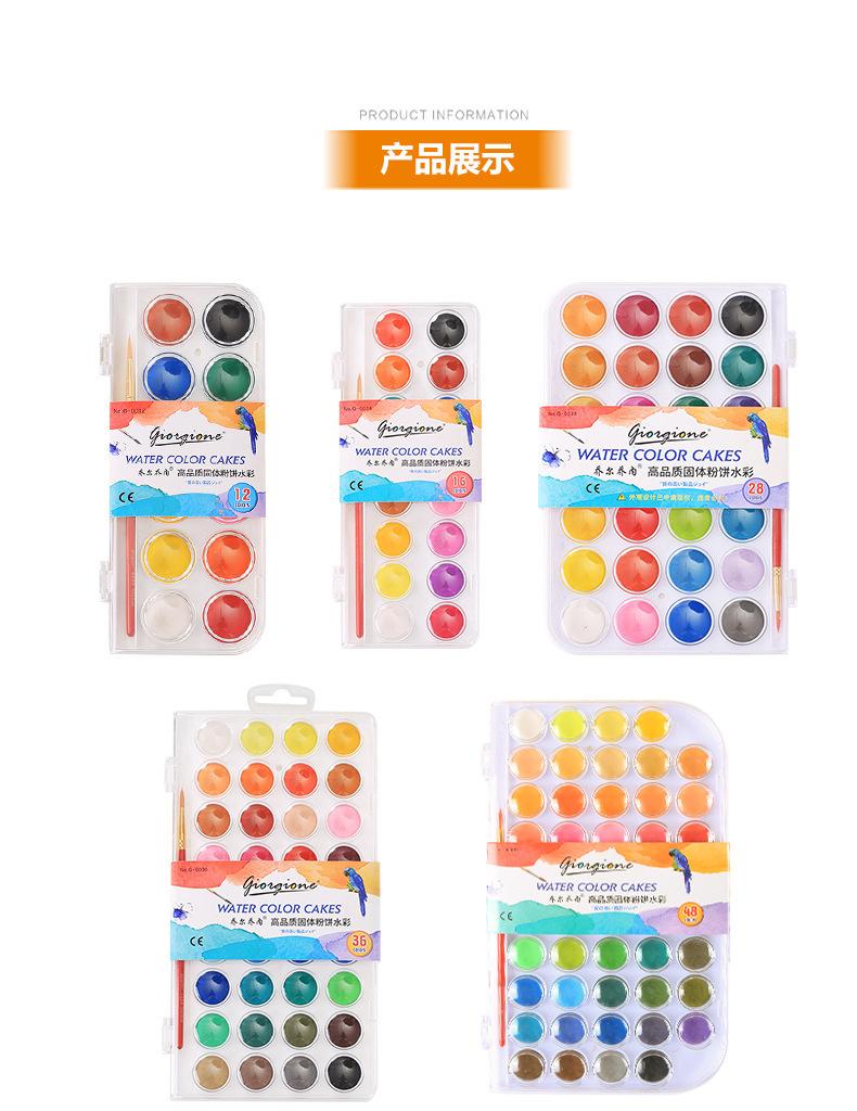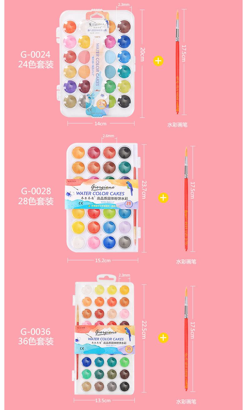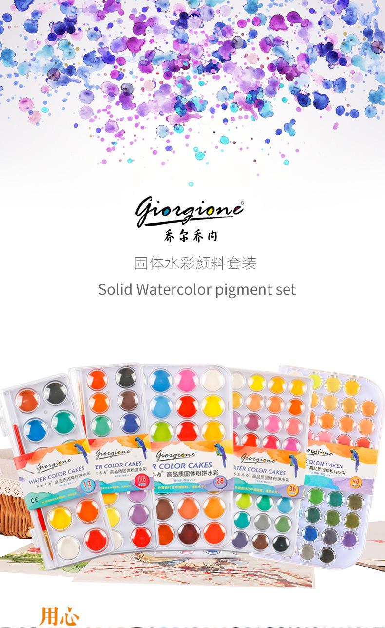 Pigmento gouache de acuarela sólido de 36 colores Giorgione, polvo para principiantes, arte de pasteles, acuarela sólida, fábrica al por mayor