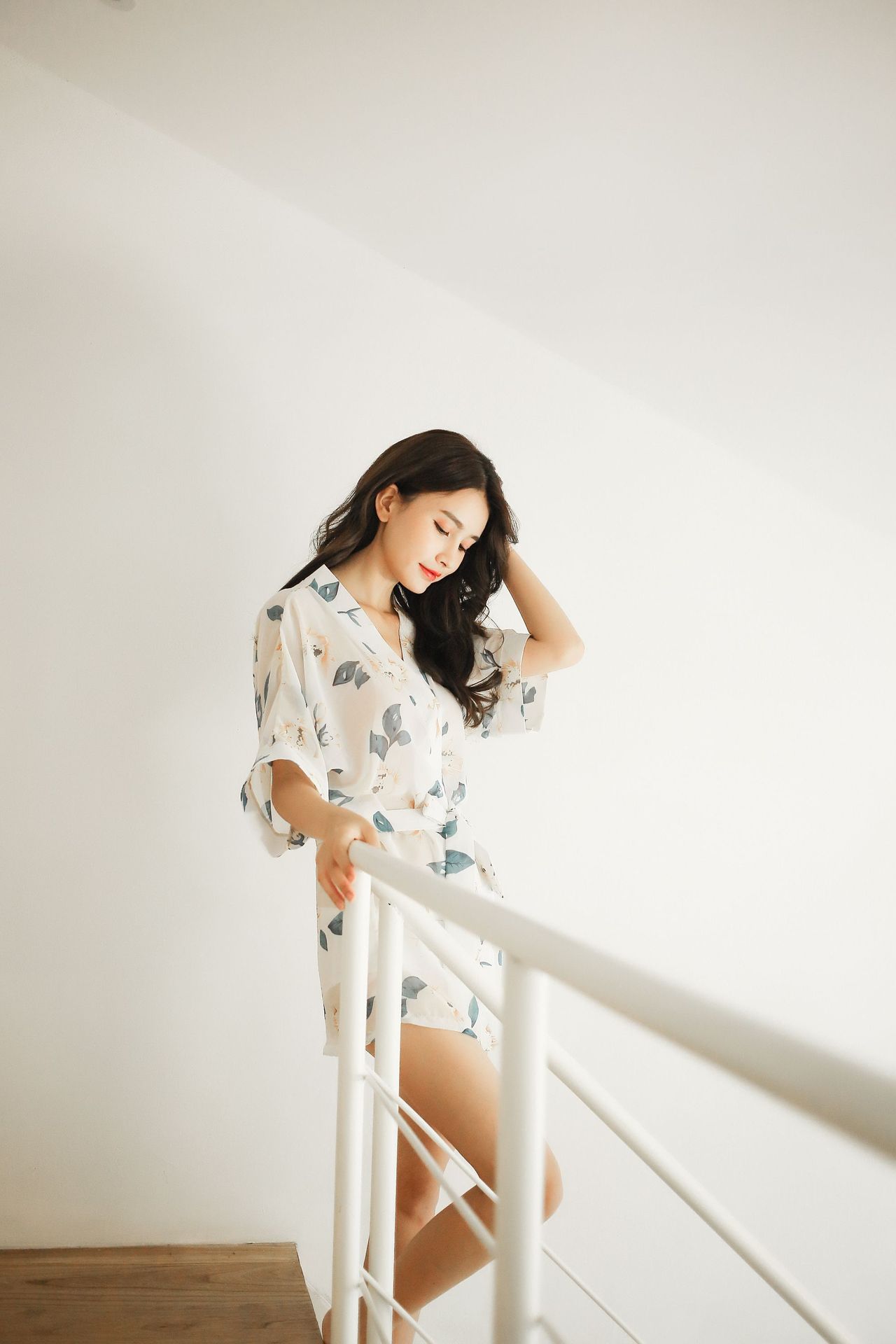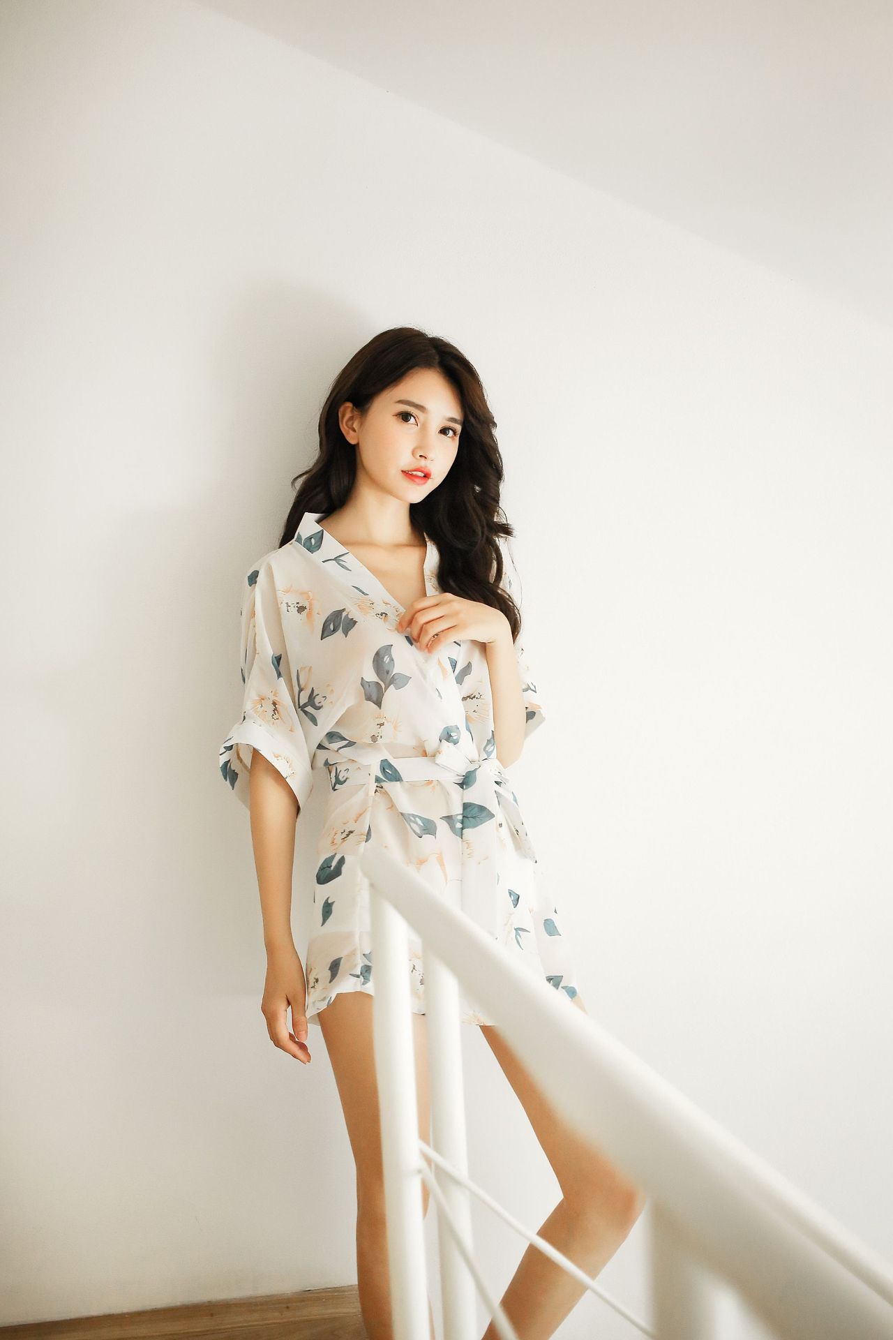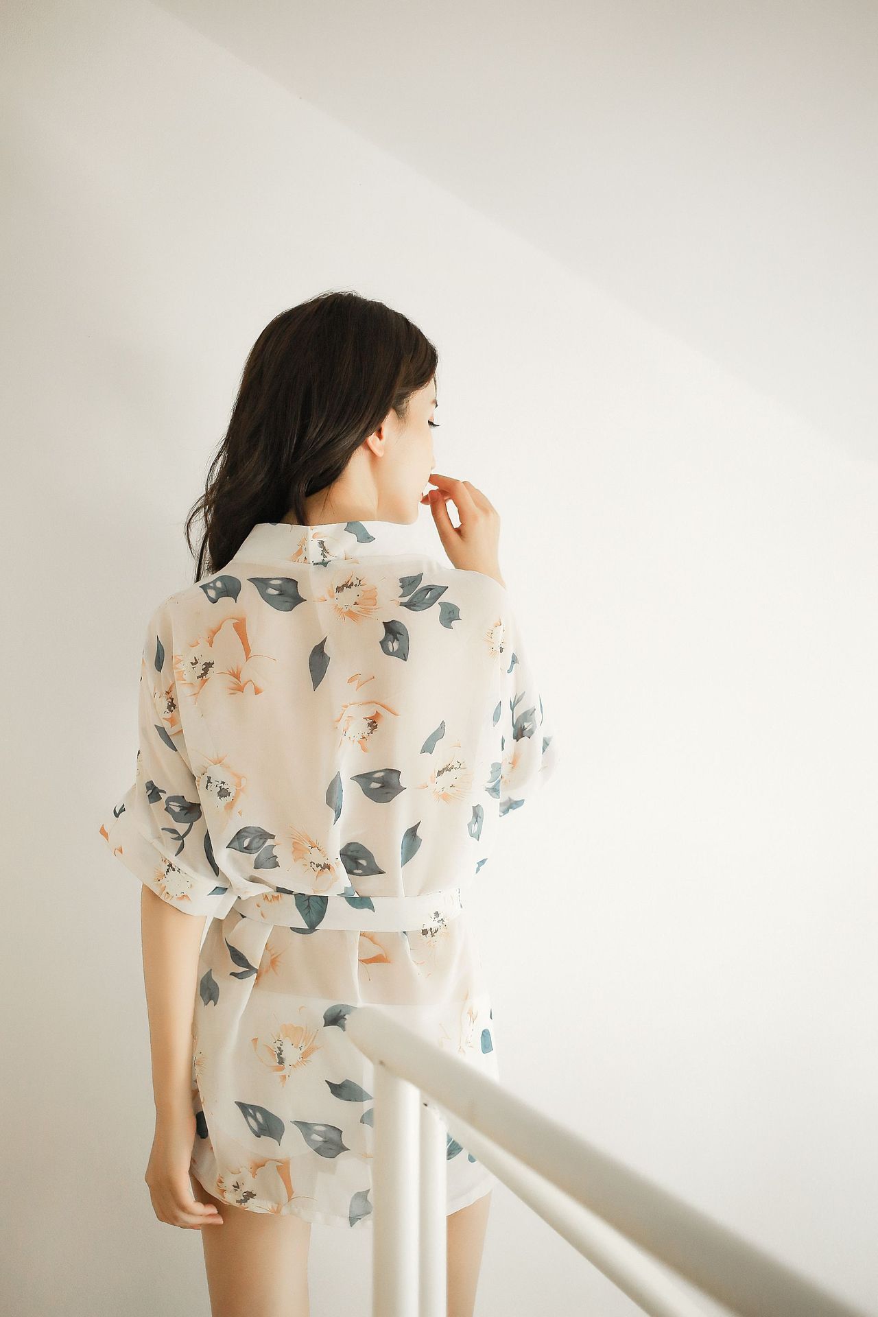 Ruru Lencería Sexy para Mujer Tentación de Chifón Sexy Talla Grande Pijama Transparente con Estampado Kimono Camisón Bata Set