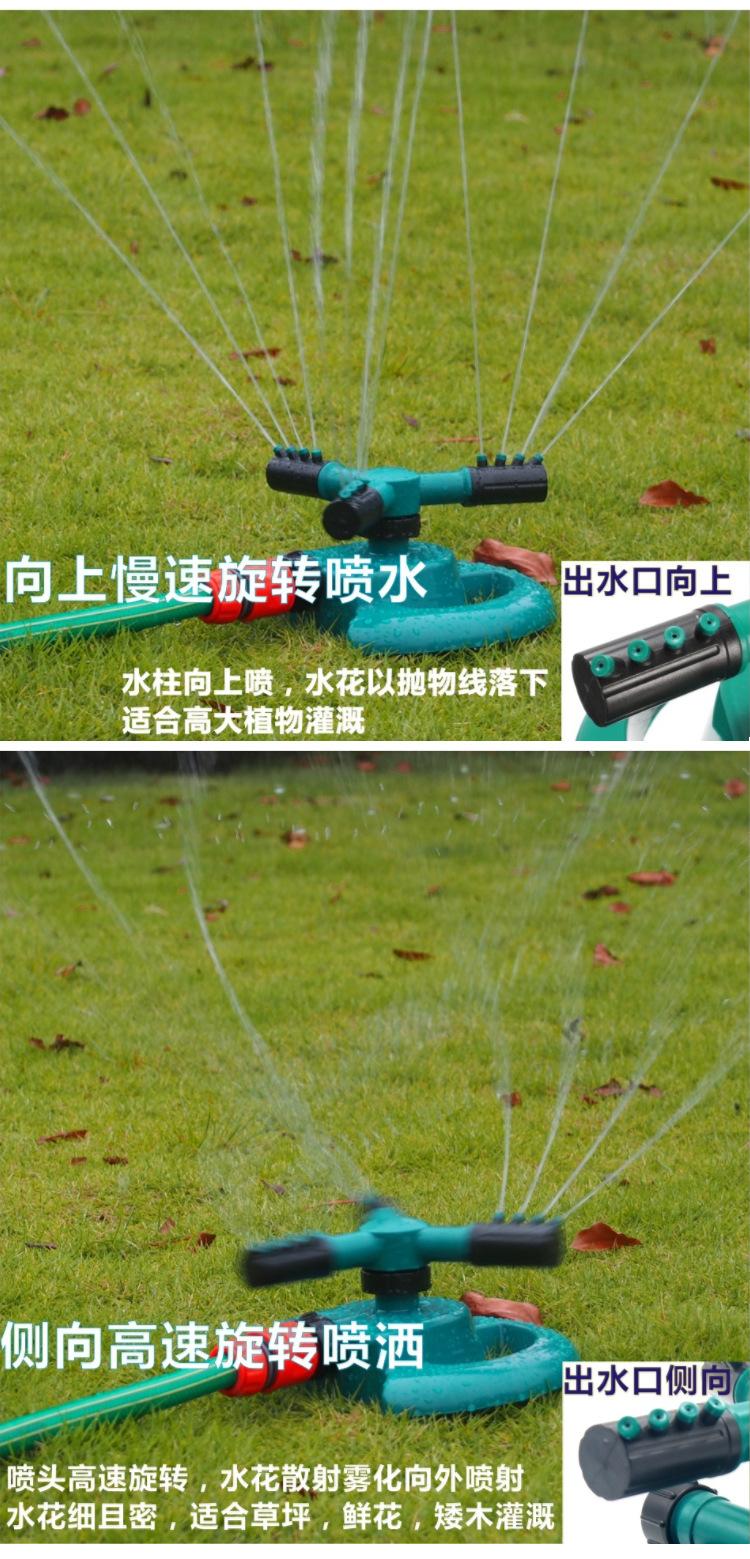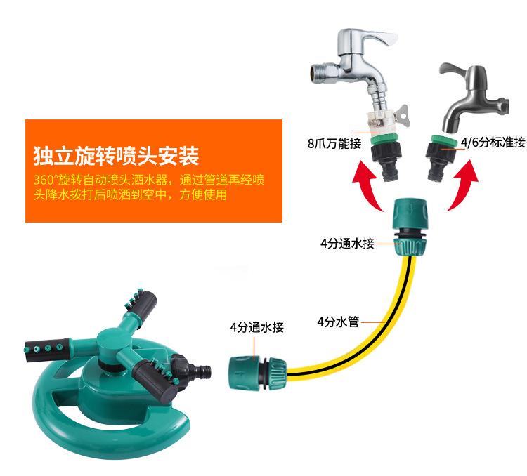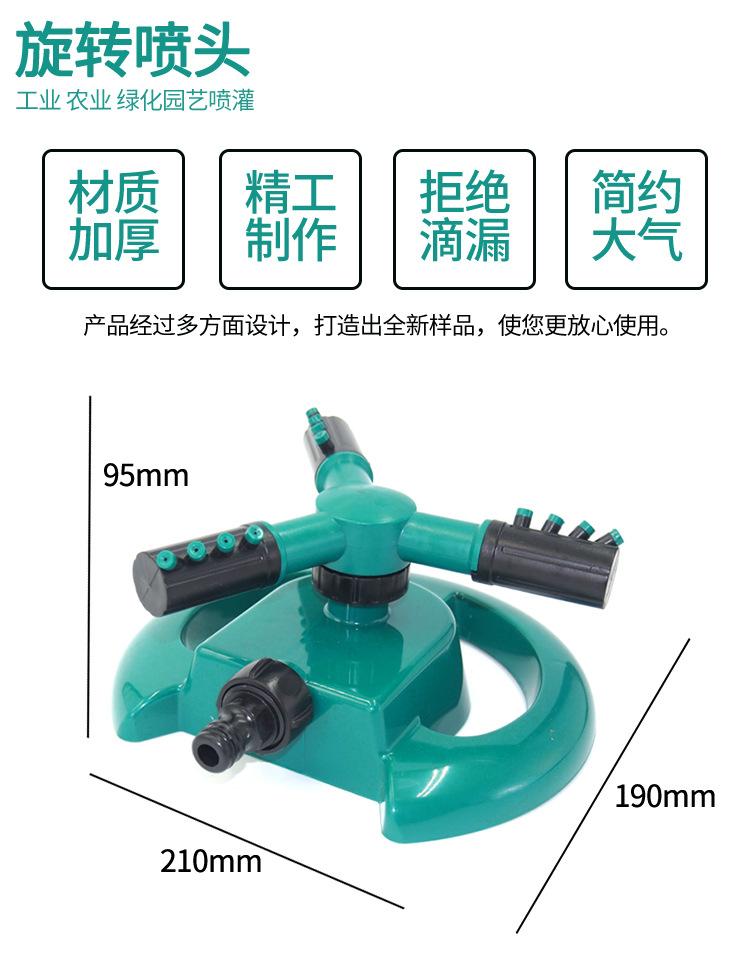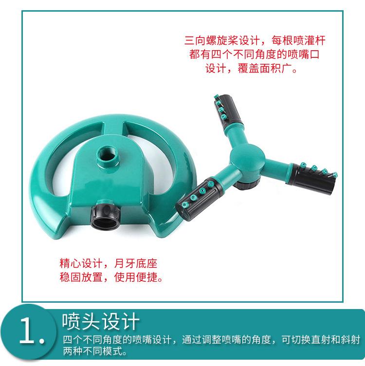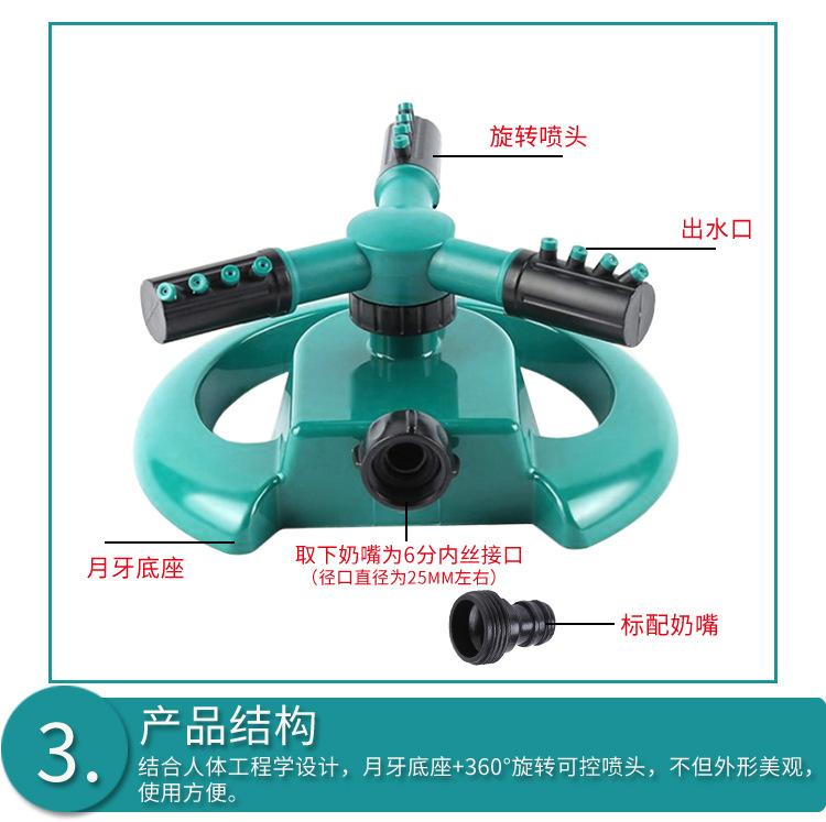 Suministro de fábrica, aspersor de riego de césped con tres horquillas grandes y giratorio de 360 grados, aspersor tipo media luna