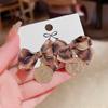 Pendientes con lazo y estampado de leopardo de tela otoñal con aguja de plata S925 para mujer, pendientes colgantes con retrato de temperamento versátil a la moda.