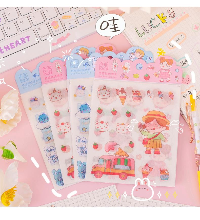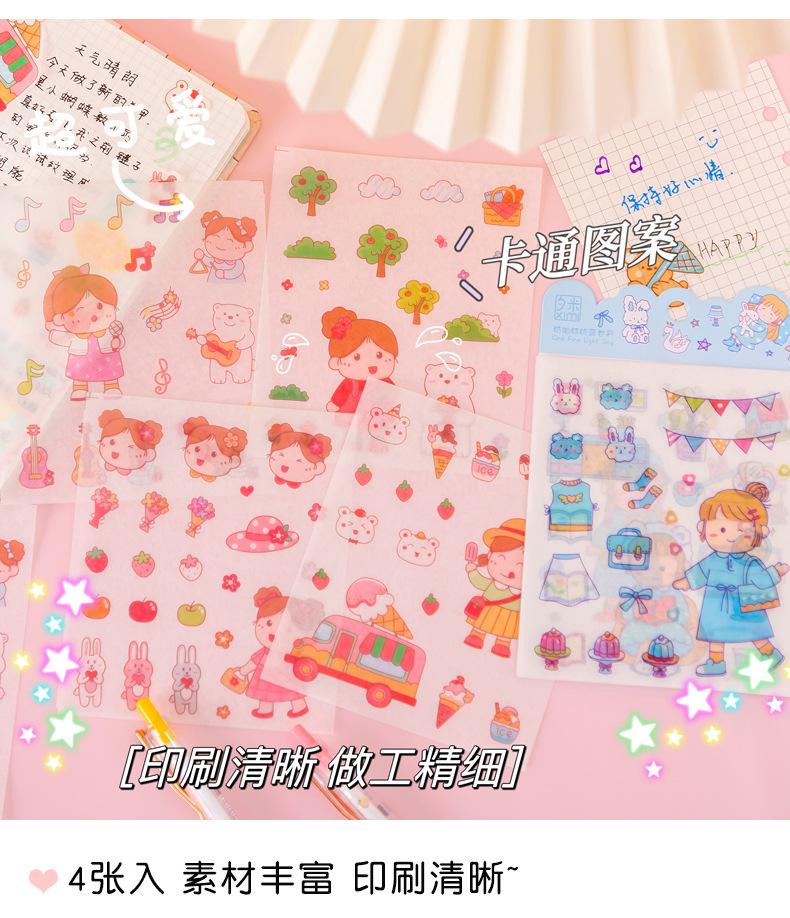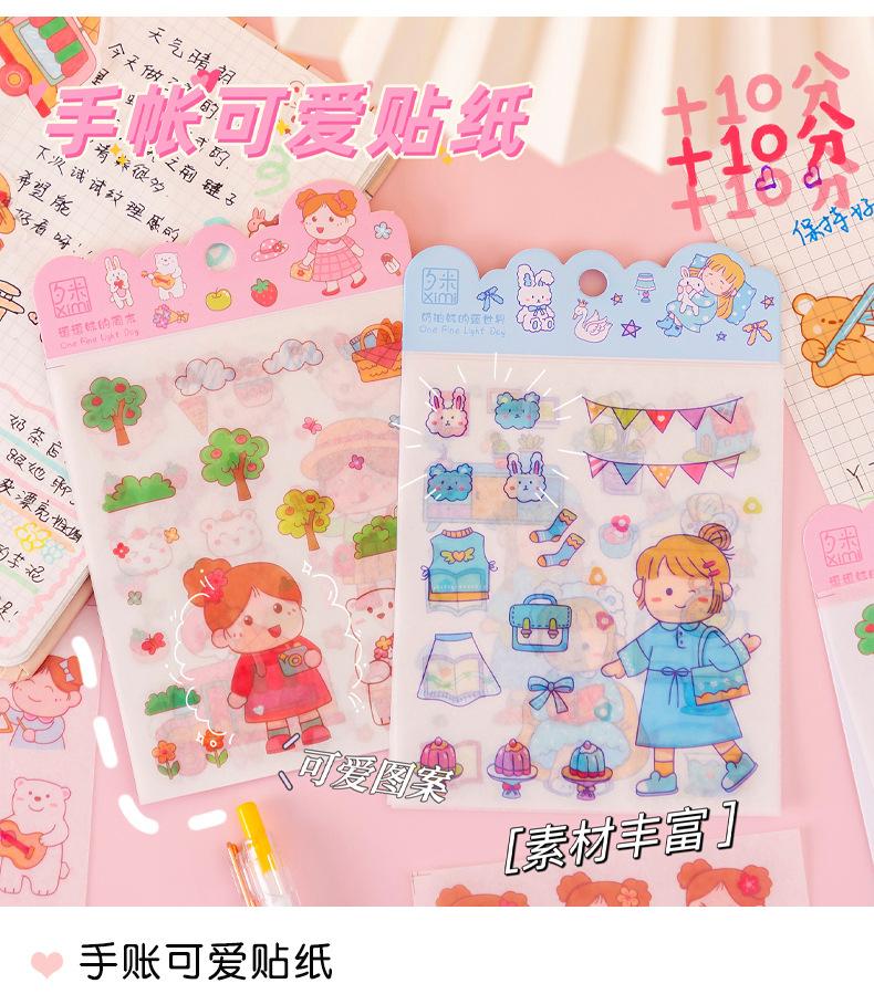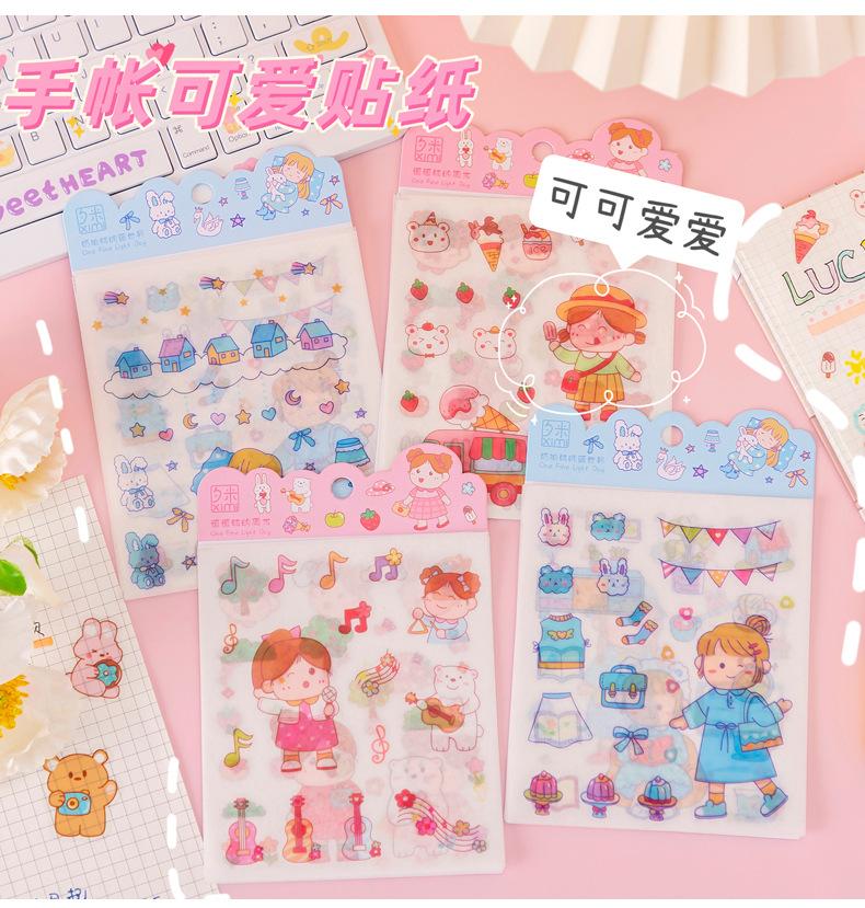 Pegatinas de PVC con personajes de dibujos animados, serie de chicas color crema, pegatinas creativas y lindas, pegatinas decorativas de dibujos animados para hacer tú mismo.