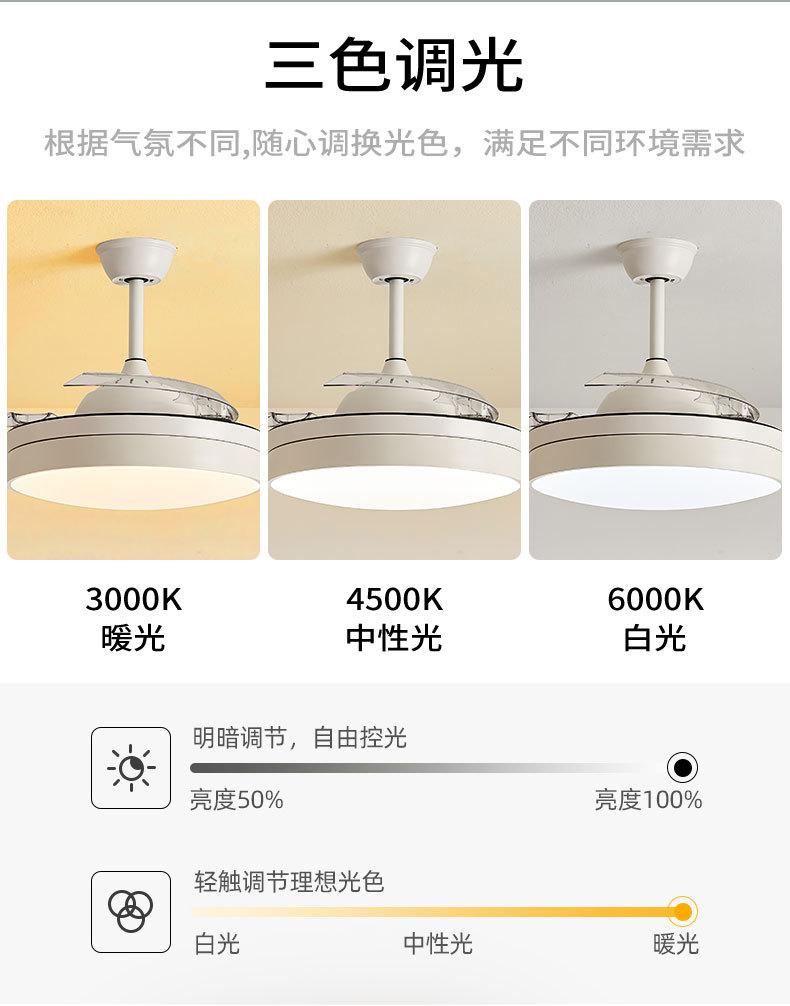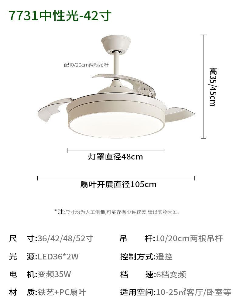 Invisible fan light, variable frequency ceiling fan light, bedroom and living room led fan light