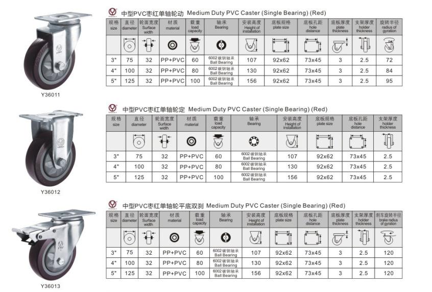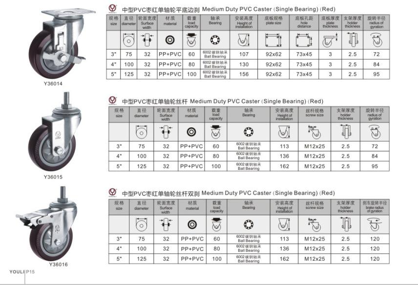 rueda de PVC burdeos de 4 pulgadasRueda de PVC burdeos de 5 pulgadas