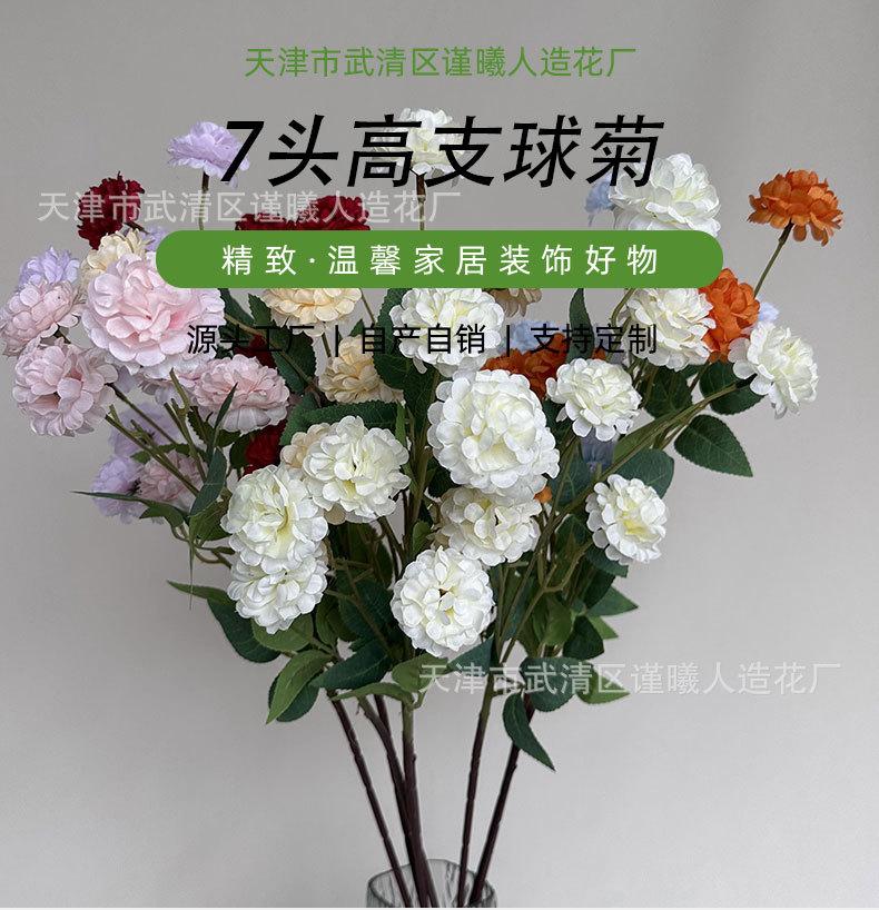 Crisantemo de 7 cabezas de ramas altas, decoración del hogar, arreglo floral, fotografía al aire libre, accesorios, flores artificiales para bodas.
