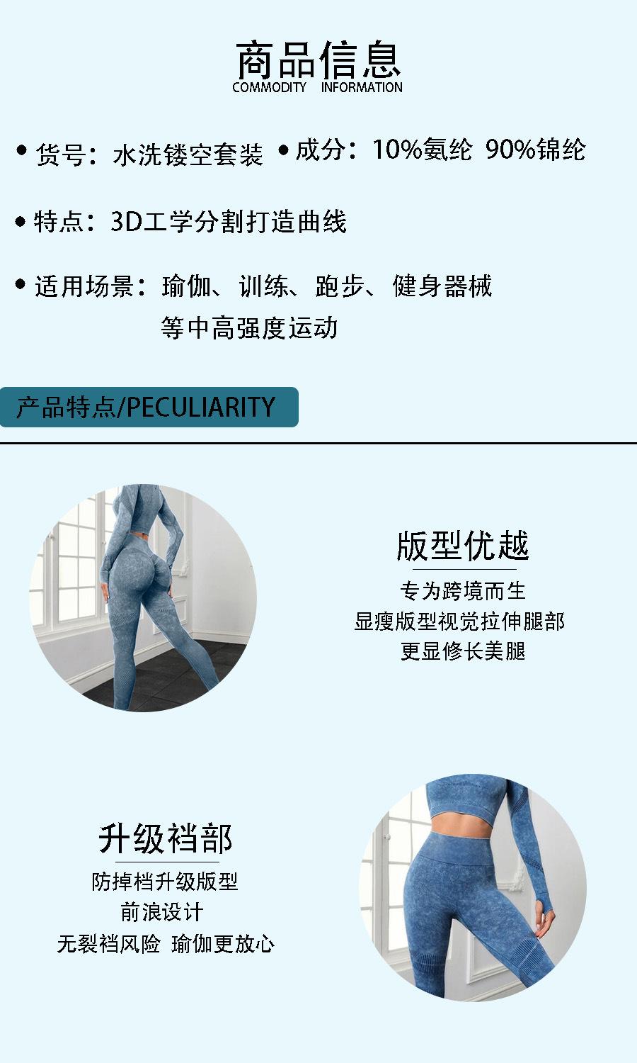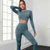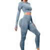 Conjunto de dos piezas de ropa de yoga sin costuras lavada europea y americana para mujer, pantalones de yoga deportivos ajustados de cintura alta y manga larga para fitness