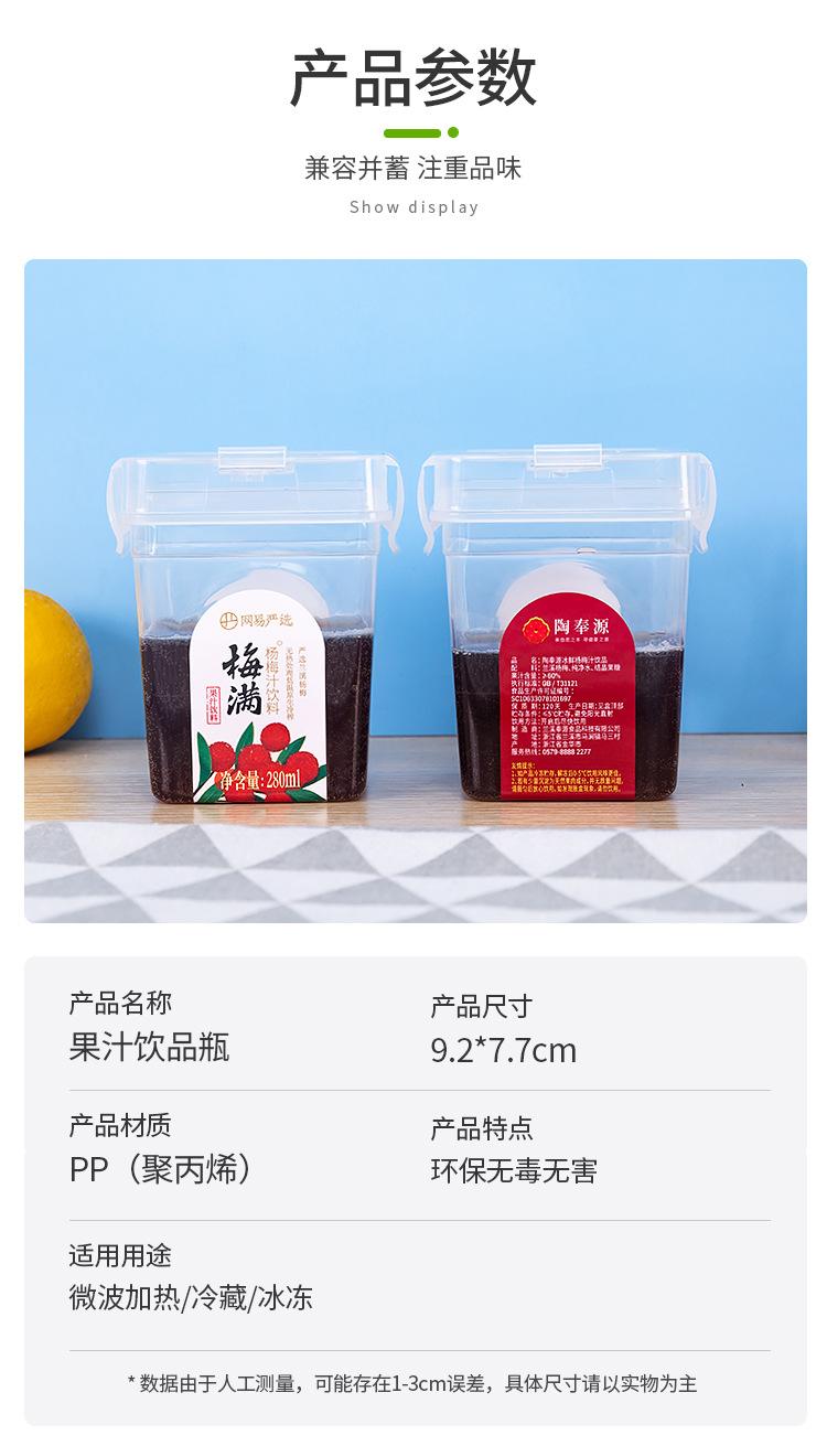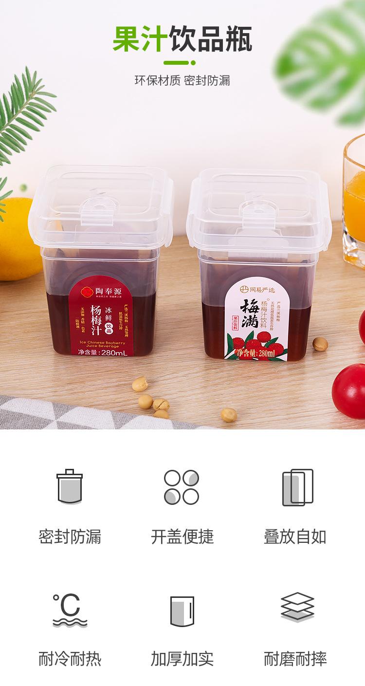 Chengyou Wangji Net Red 280 ml - Caja de embalaje para jugo de arándano helado cuadrado, vaso de jugo, botella de plástico cuadrada para bebidas