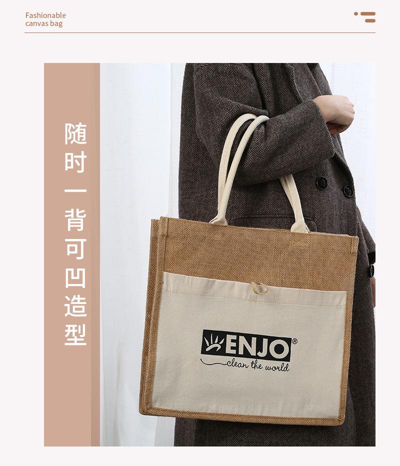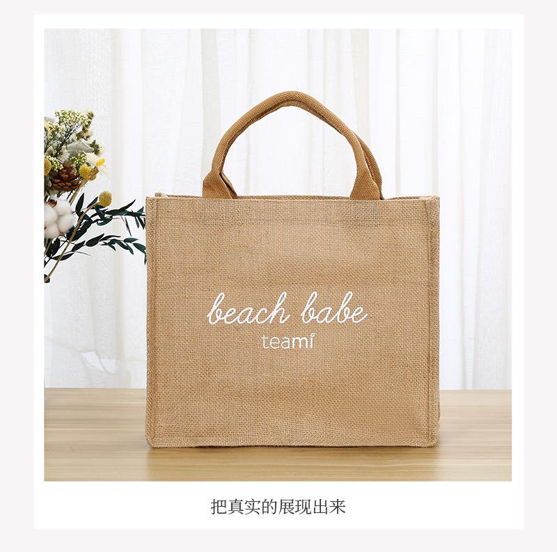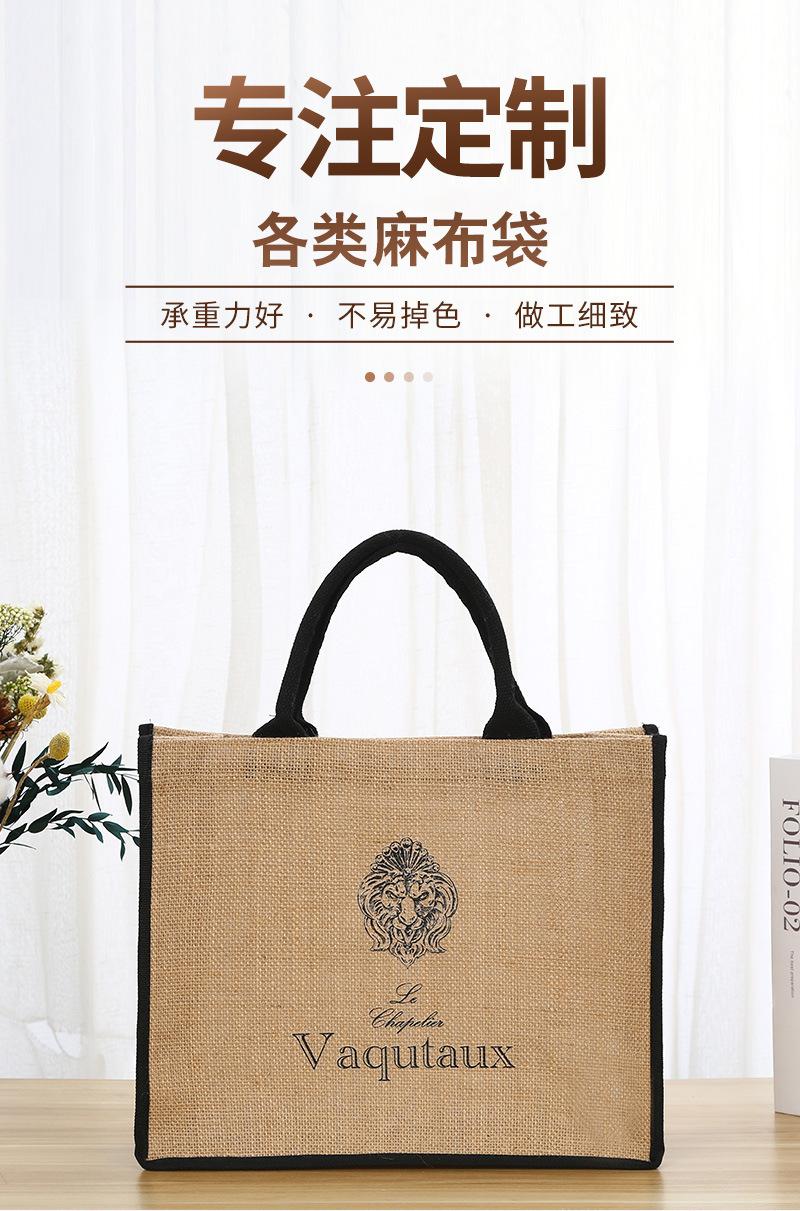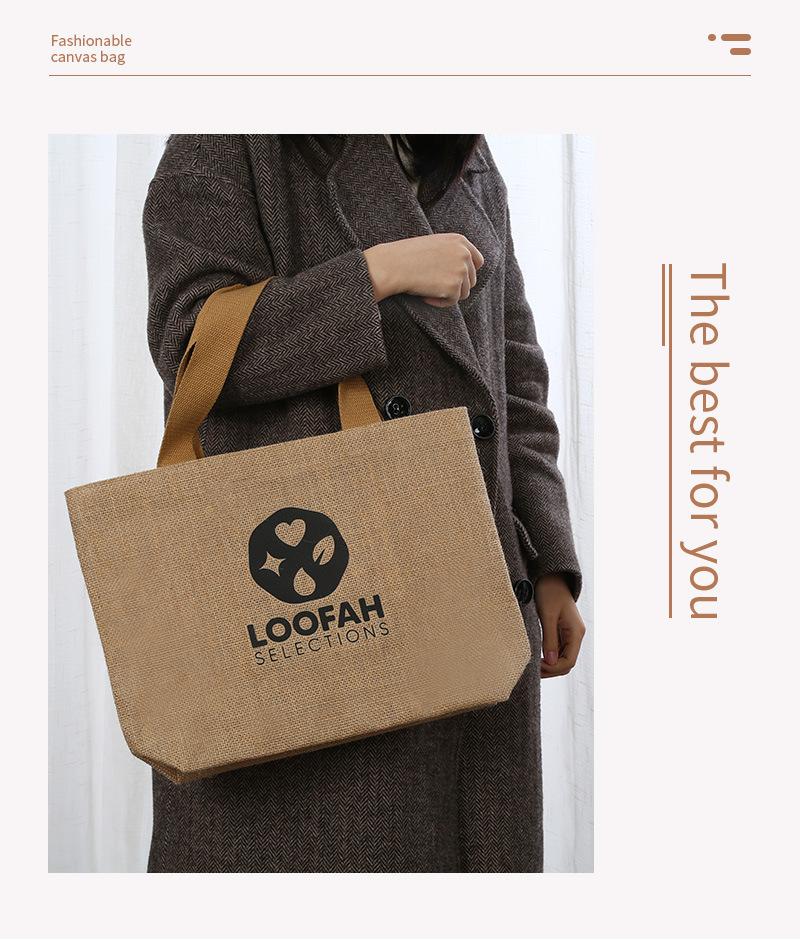 Bolsa de yute para compras de estilo simple, regalo, saco portátil con impresión personalizada, saco retro de un solo hombro, logotipo personalizado