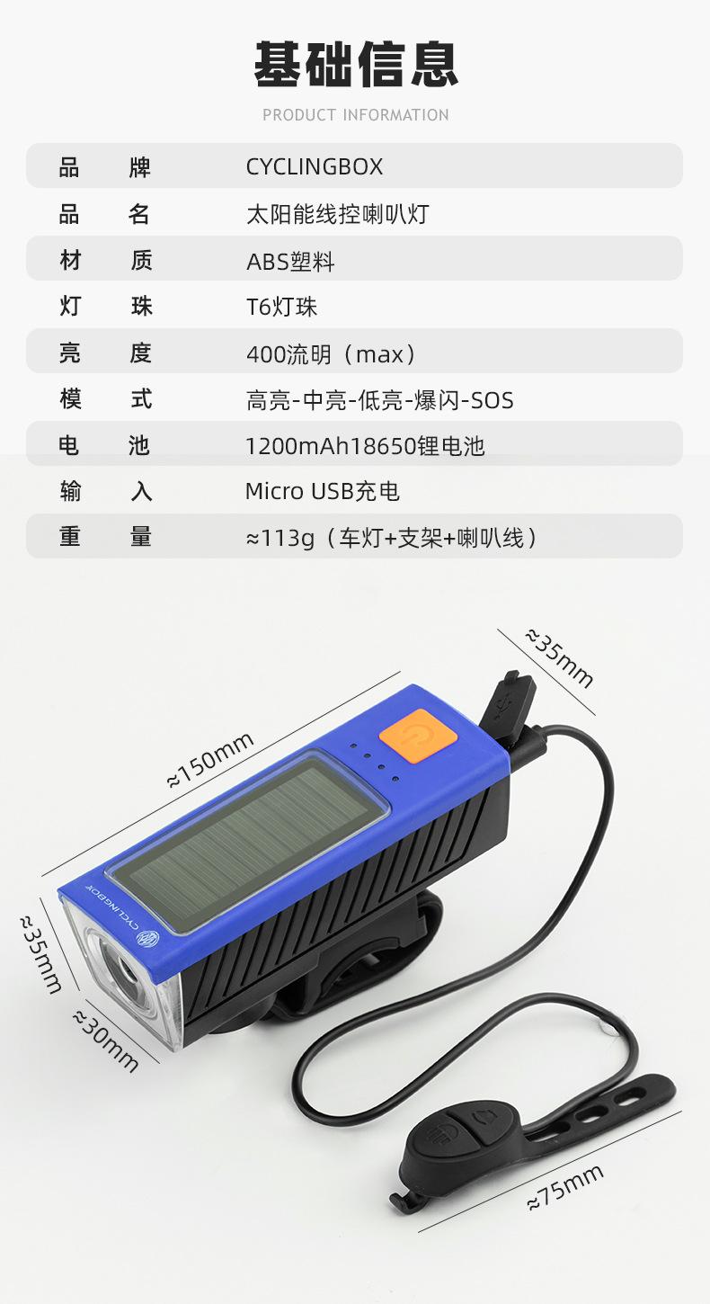 Faro solar para bicicleta personalizado, luz de advertencia para bicicleta de montaña, luz de carga para bicicleta, luz de bocina para bicicleta de montaña