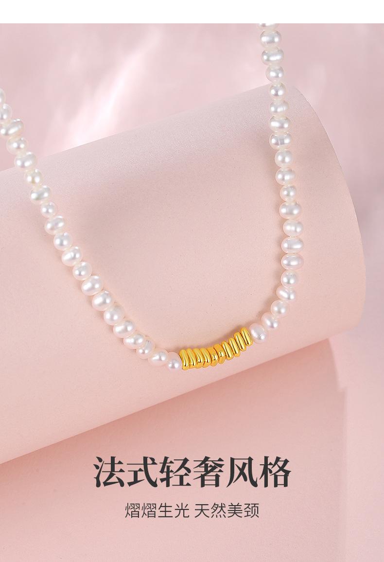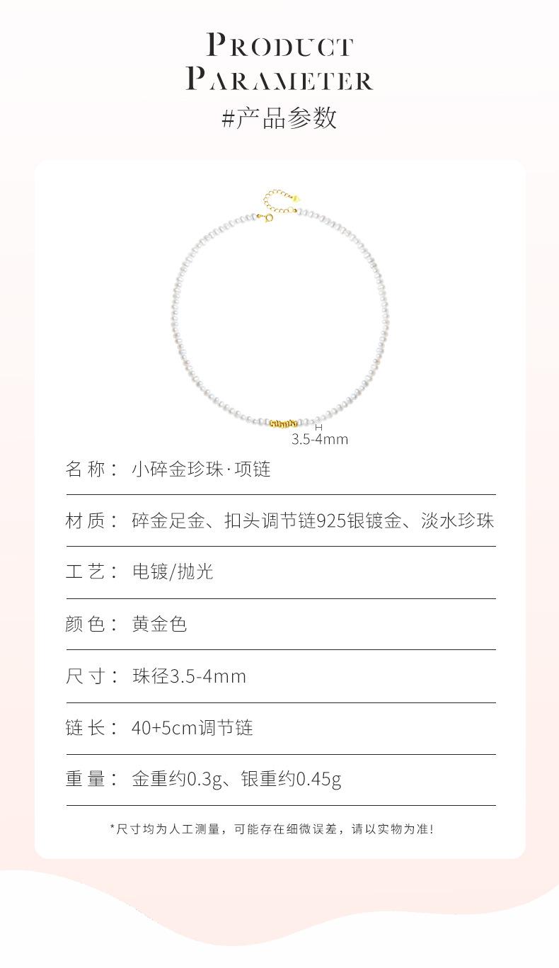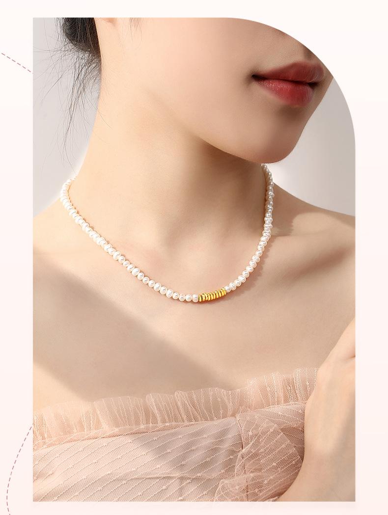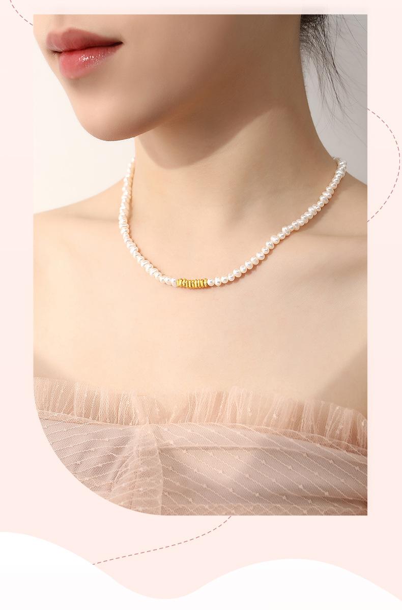 S999 oro puro pequeño oro roto collar de perlas naturales de agua dulce para mujer estilo ins lujo ligero cadena clavícula joyería nicho al por mayor