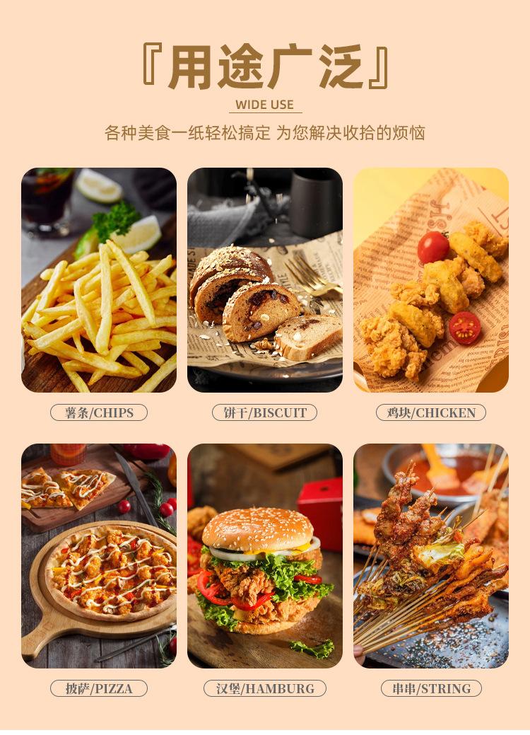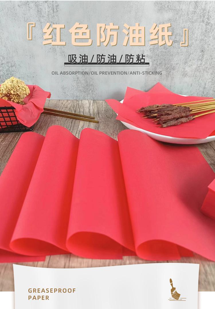 Papel desechable a prueba de aceite para alimentos fritos, papel absorbente de aceite para platos, papel para envolver alimentos, papel rojo para hornear con aceite