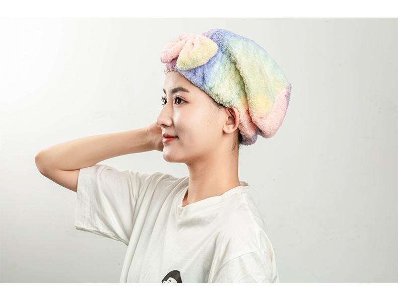 Gorro de secado de cabello engrosado de doble capa transfronterizo, gorro de secado de cabello absorbente de agua y de secado rápido, turbante estampado de dibujos animados lindo de estilo coreano al por mayor
