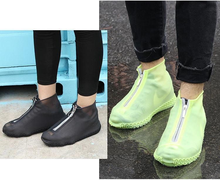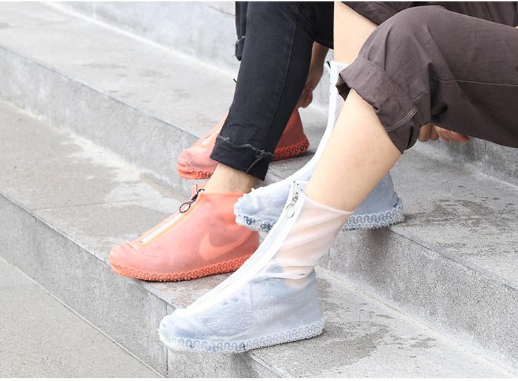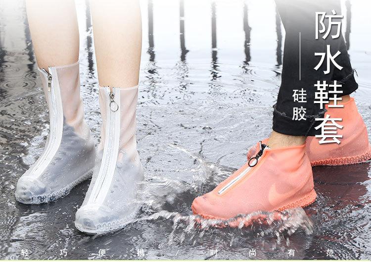 Venta al por mayor de cubiertas para zapatos de lluvia transfronterizas, impermeables, con cremallera, resistentes al desgaste, botas de lluvia de suela gruesa, de tubo medio y alto, cómodas cubiertas antideslizantes para zapatos antiincrustantes para salir