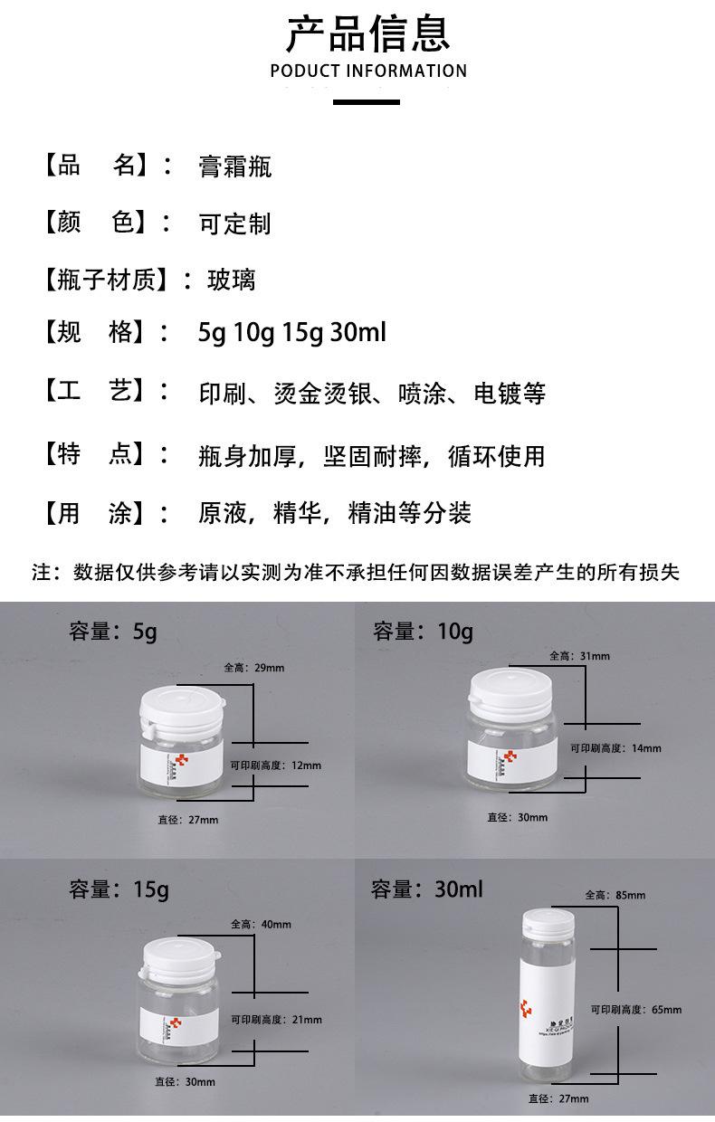 5g; transparent bottle + white mask cap; glass, 10g; transparent bottle + white mask cap; glass, 15g; transpar...
