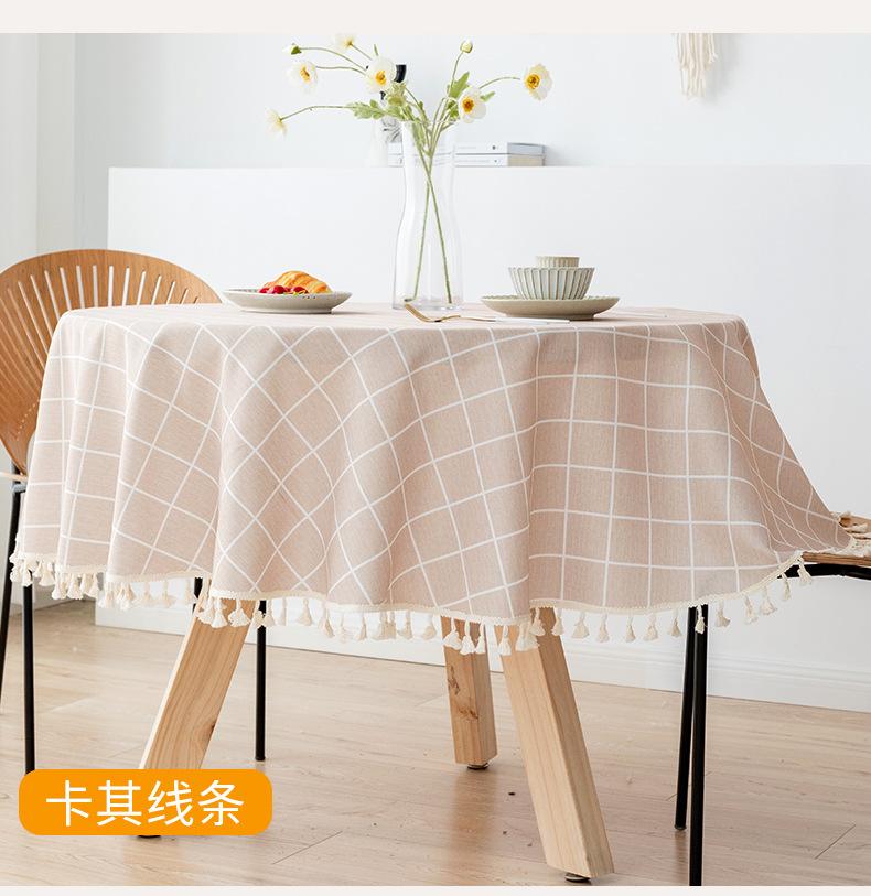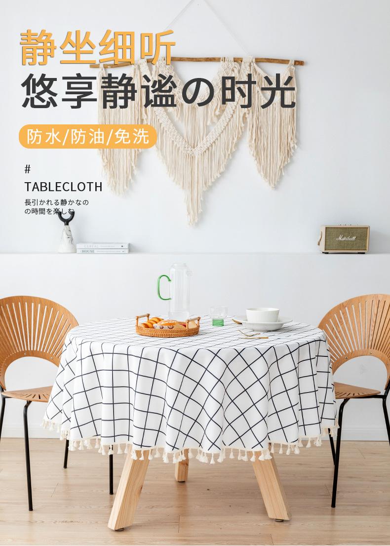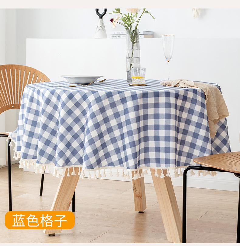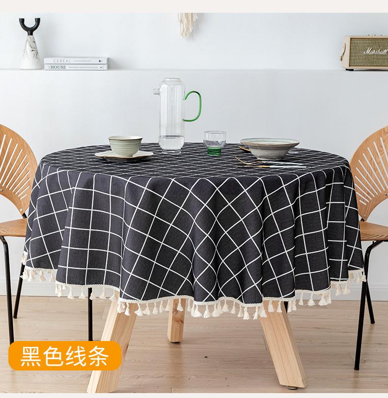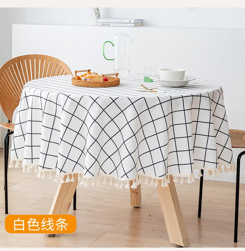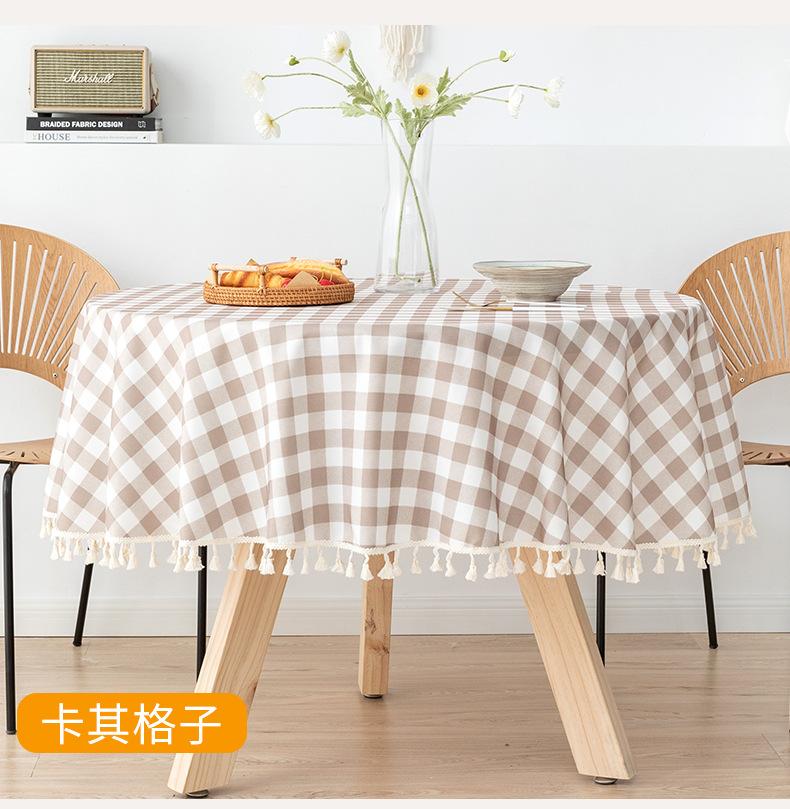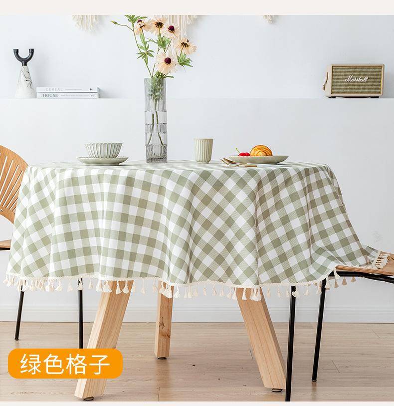 Mantel redondo nórdico, impermeable y resistente al aceite, lavable a cuadros, con borlas frescas, para mesa de comedor, para el hogar, venta al por mayor
