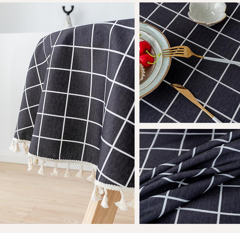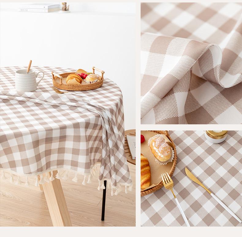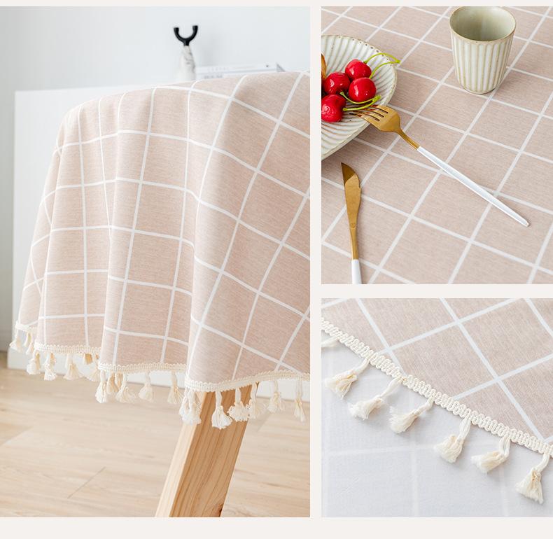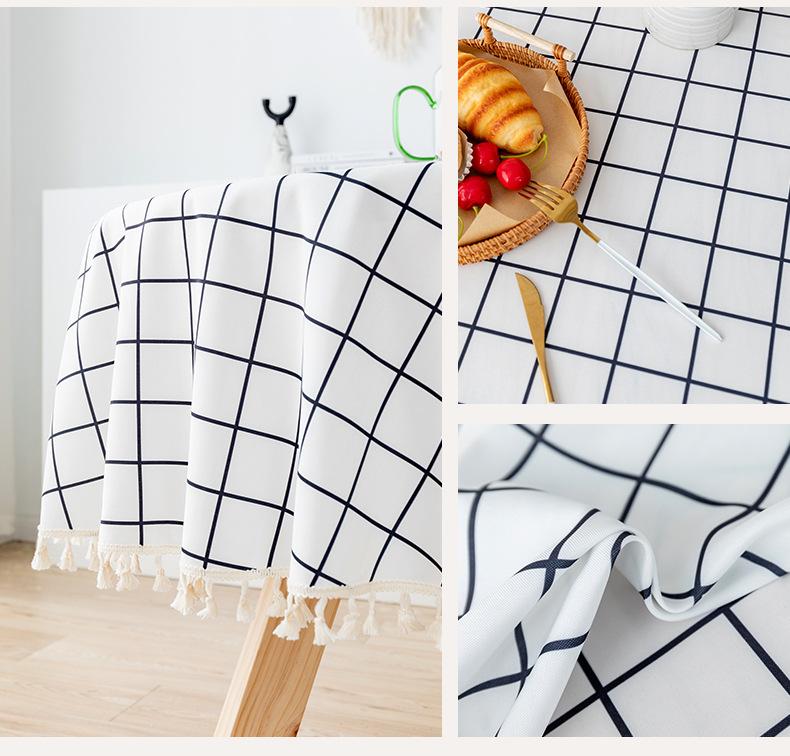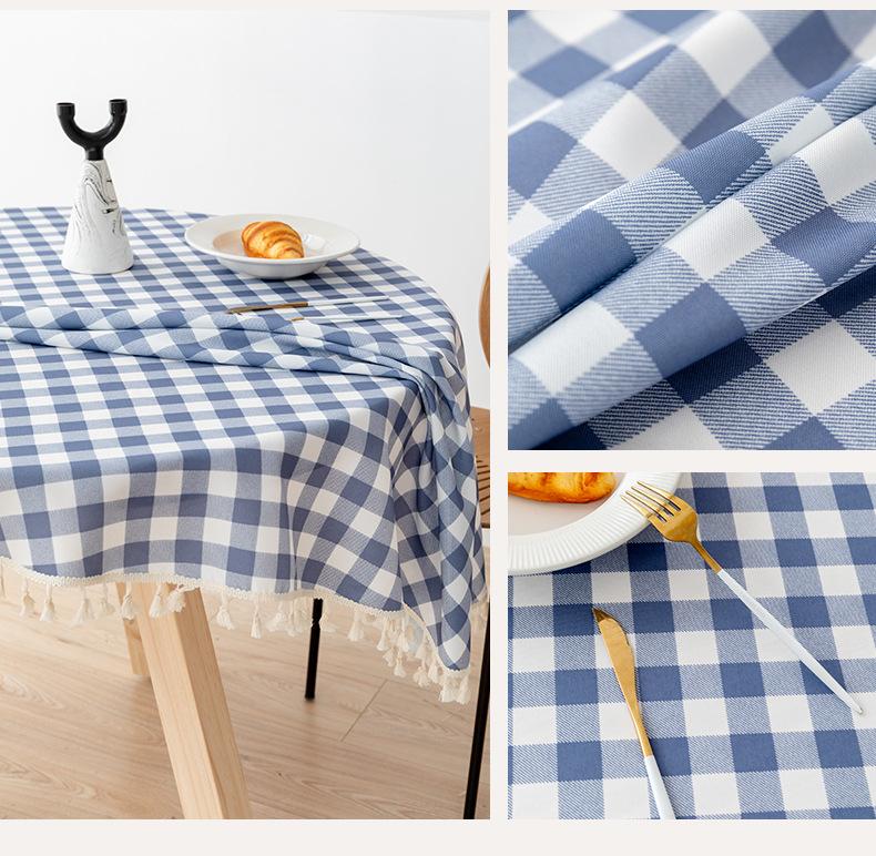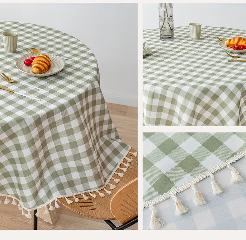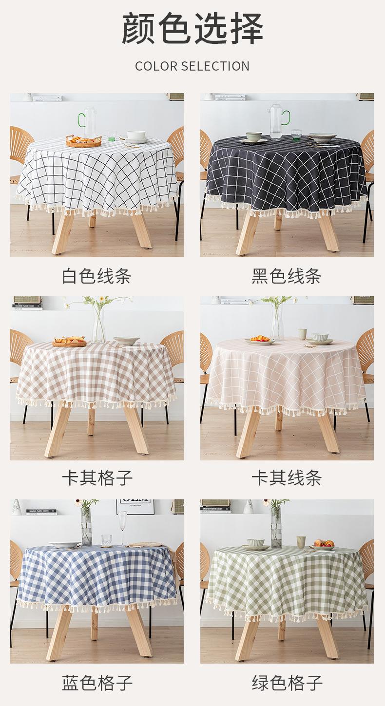 Mantel redondo nórdico, impermeable y resistente al aceite, lavable a cuadros, con borlas frescas, para mesa de comedor, para el hogar, venta al por mayor