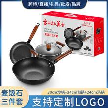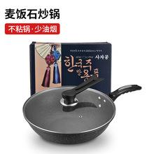 Wok de piedra médica coreana al por mayor transfronterizo para uso doméstico, estufa de gas, fondo plano, sartén antiadherente, wok engrosado, olla de regalo