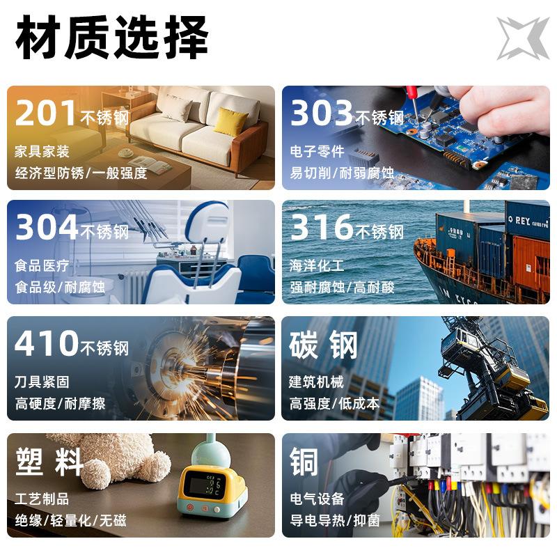 Los materiales de nuestros productos incluyen acero al carbono,304Acero inoxidable、201Acero inoxidable、410Acero inoxidable, plástico, cobre puroesperar。