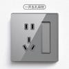 Toma de corriente de vidrio templado Jiebolang para el hogar, espejo gris, panel de interruptores de alta potencia USB16A de cinco orificios