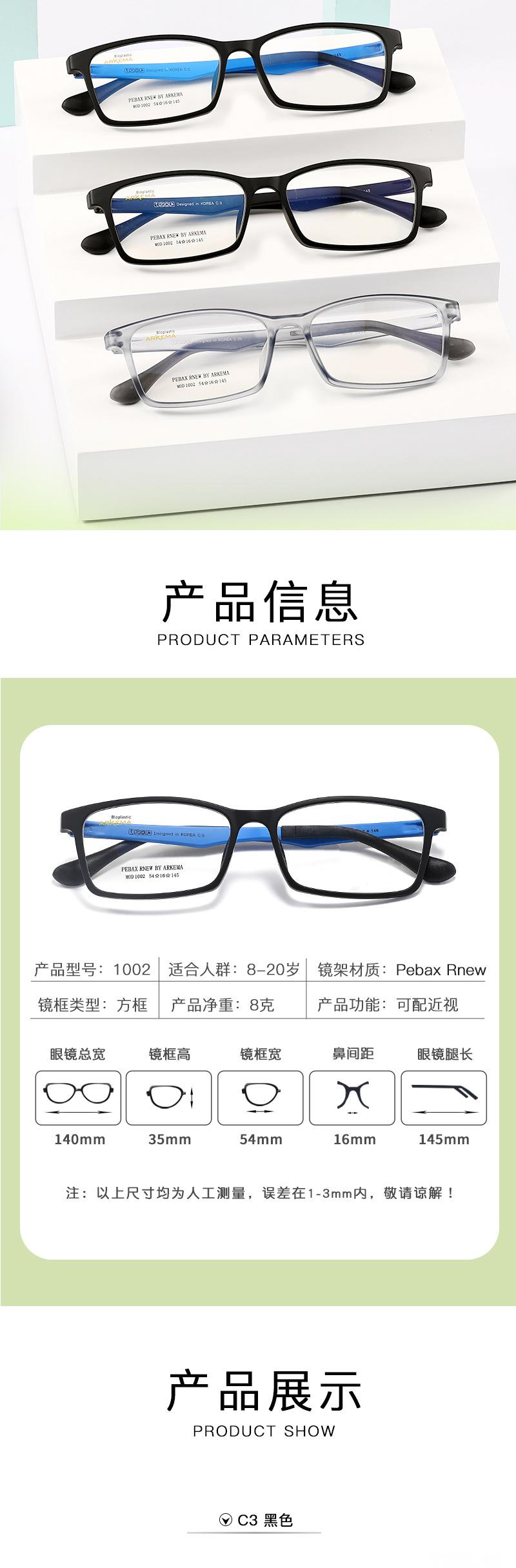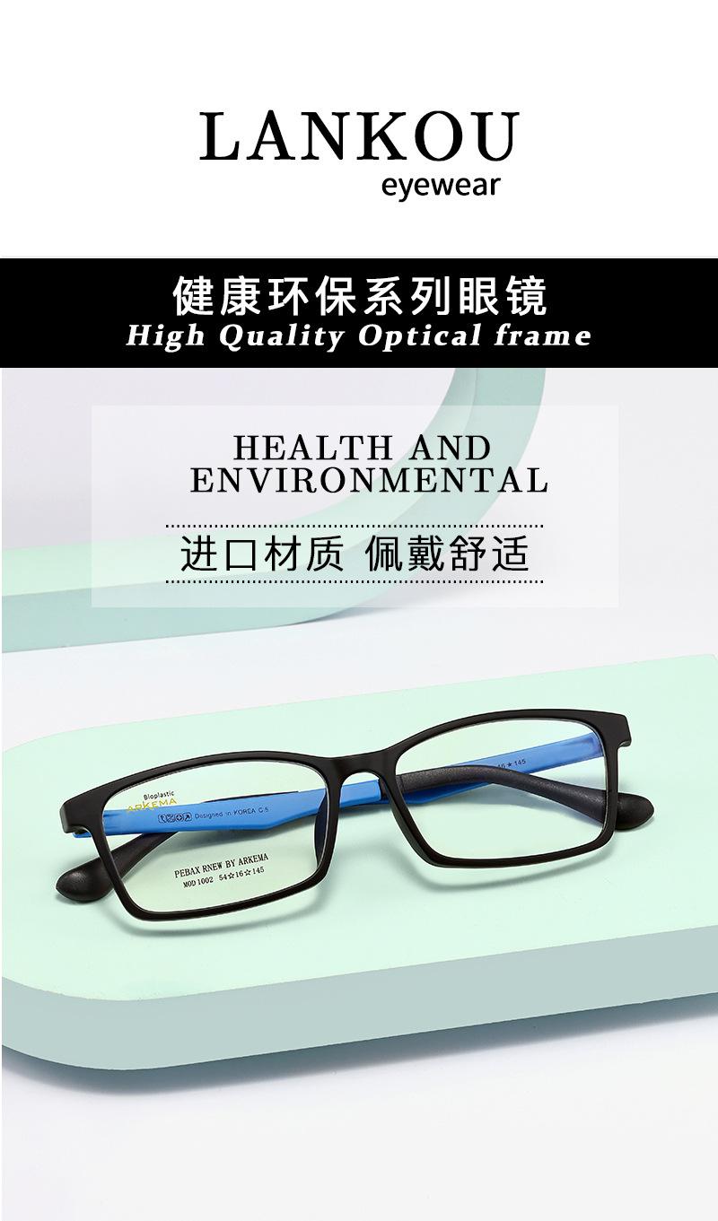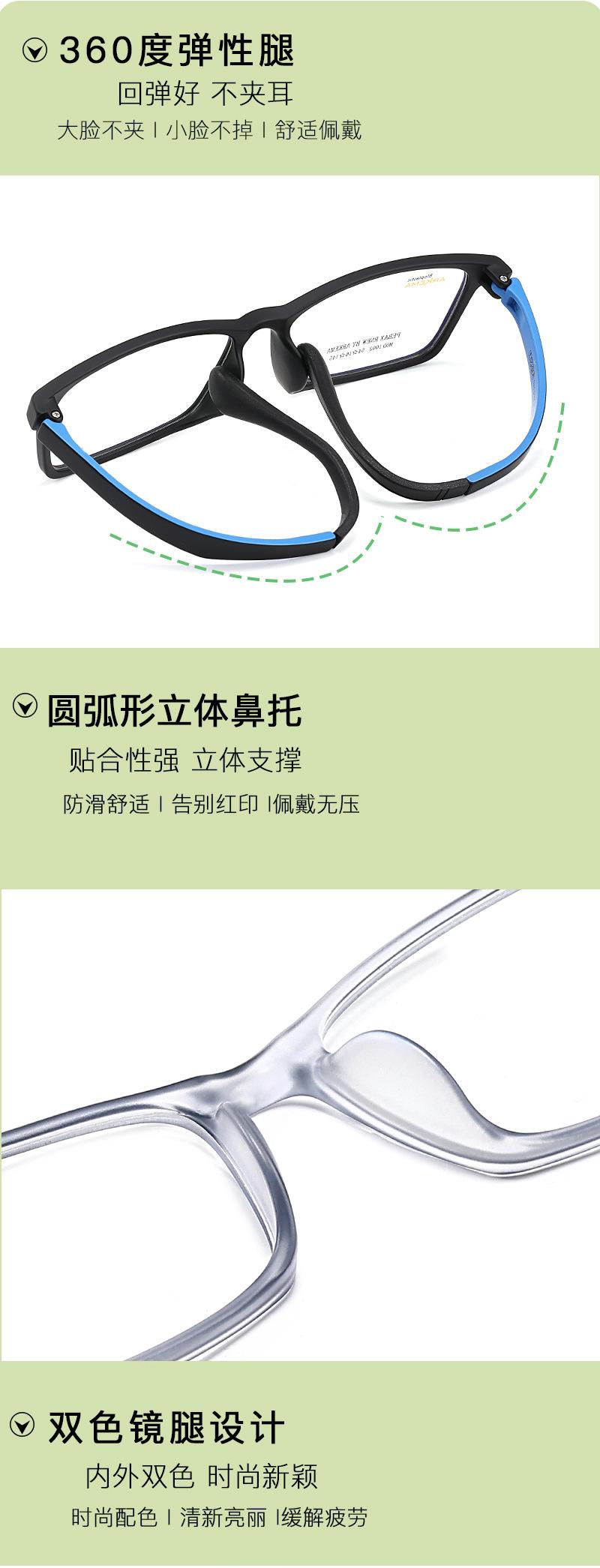 Montura de gafas para miopía NUS Optical con patillas elásticas de 360 grados y soporte nasal de silicona para gafas de estudiante.