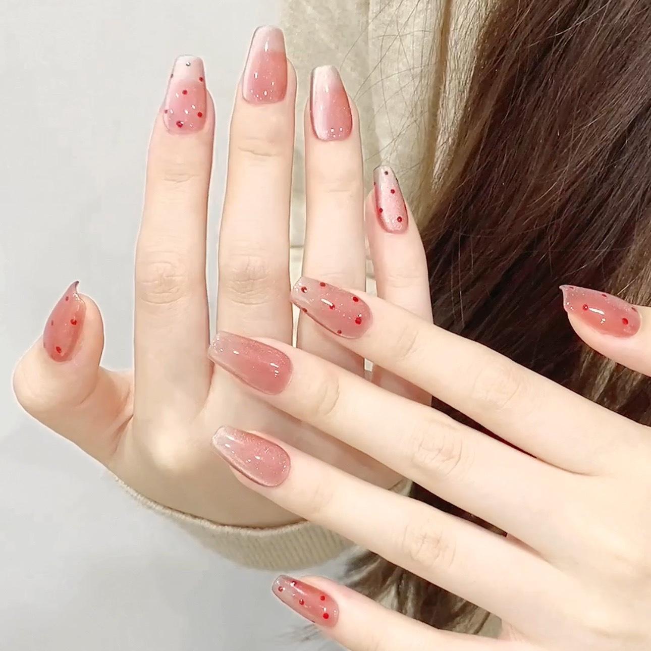 [Original de Yihe] Manicura pintada a mano con manchas de color rosa nude de primavera y verano, para usar en uñas de nicho.