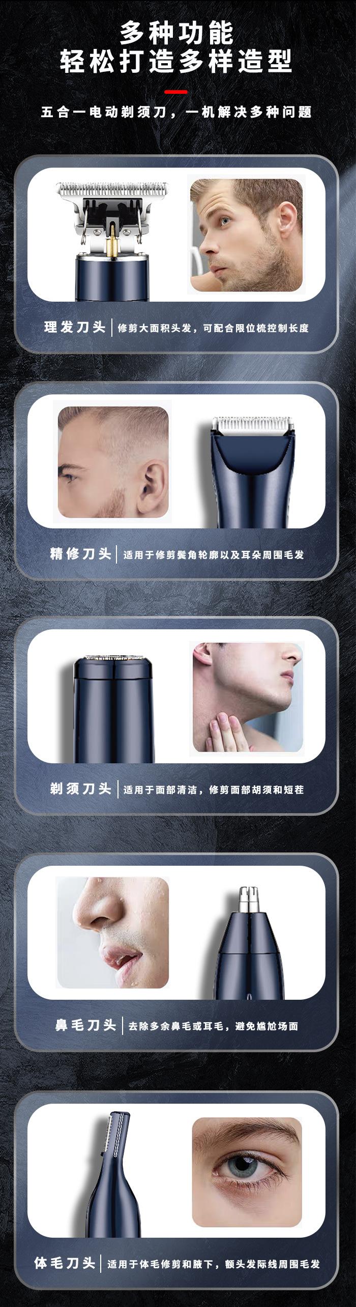 Kemei Recortador de Vello Nasal Multifuncional Transfronterizo Nuevo Cinco en Uno para el Hogar Inteligente Pantalla Digital Recortadora Eléctrica Cortapelos