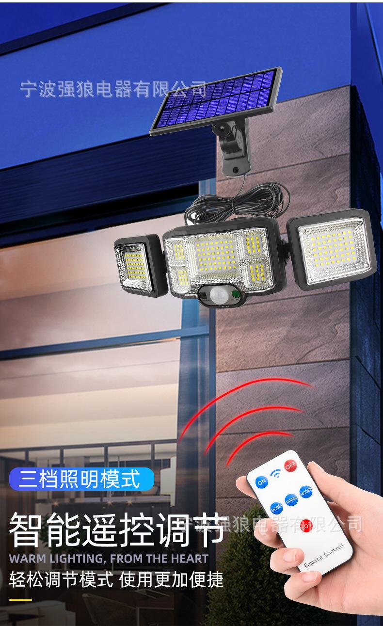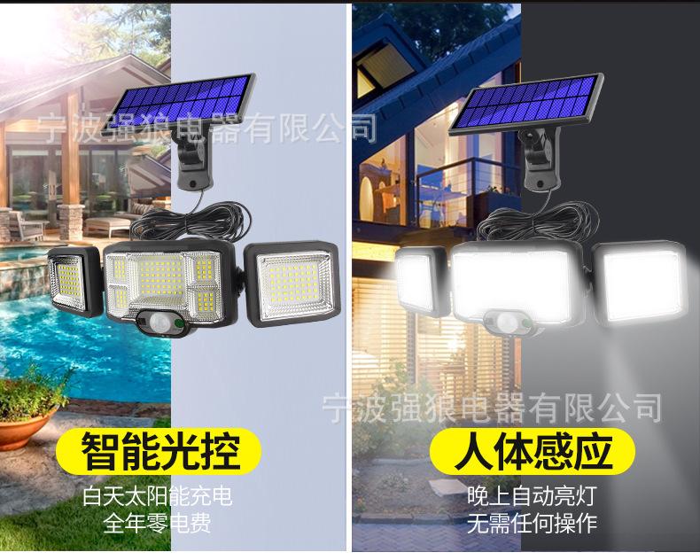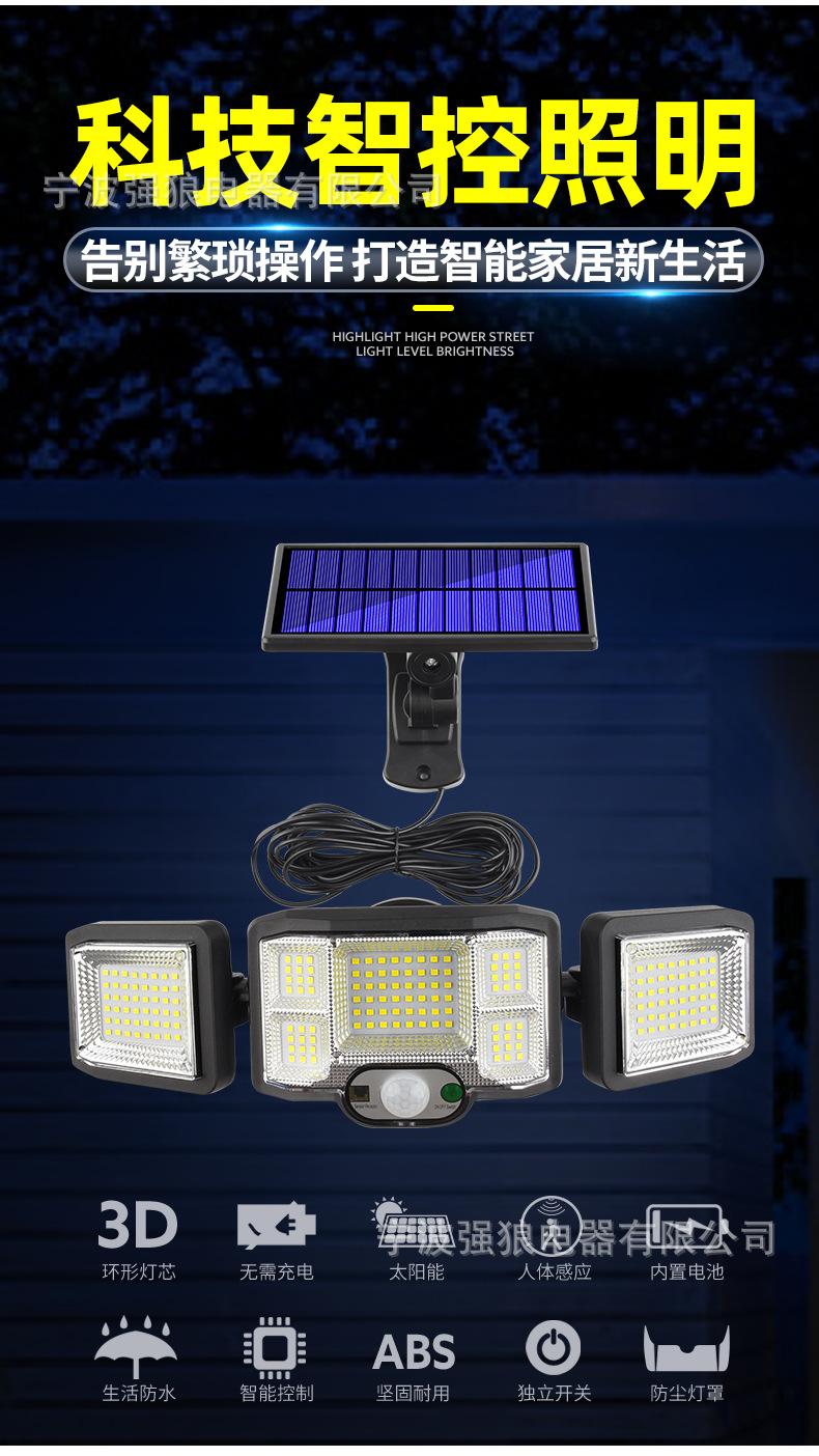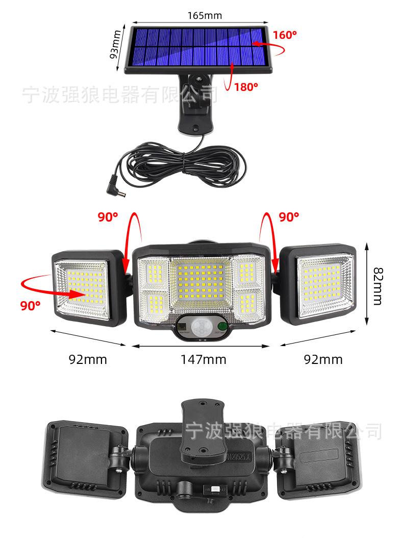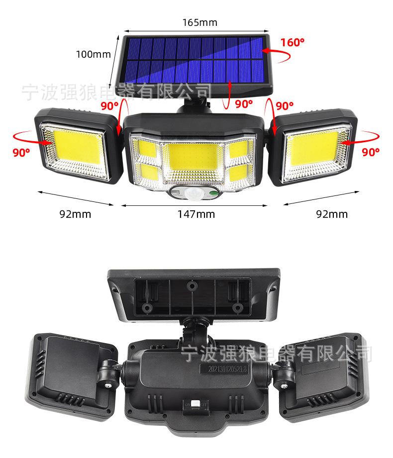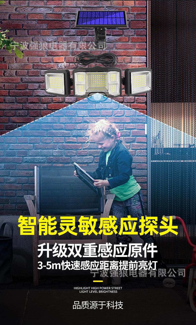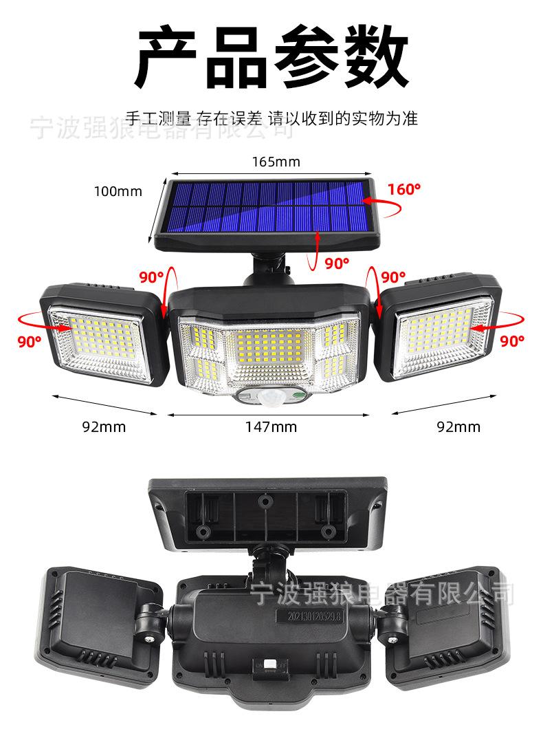 Lámpara Solar Transfronteriza de Tres Cabezales con Sensor de Cuerpo Humano Lámpara de Pared para Hogar Jardín Impermeable Iluminación de Pared Lámpara de Calle Súper Brillante