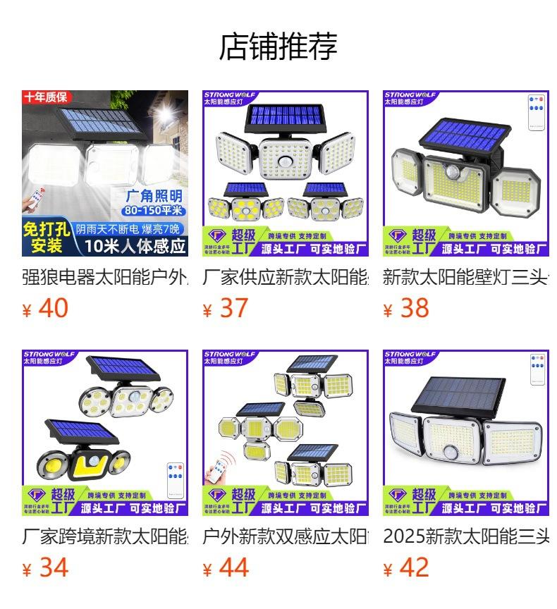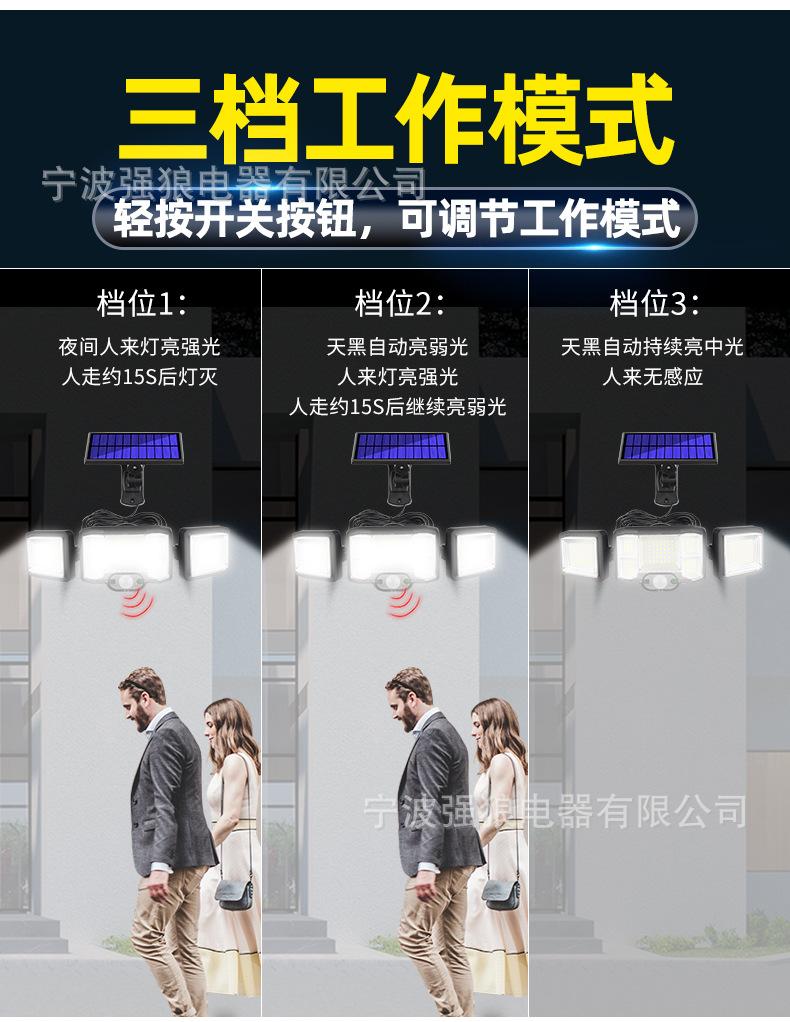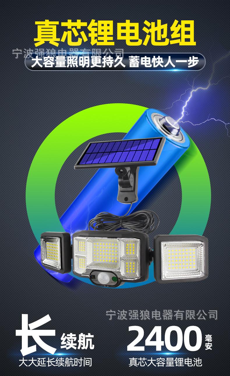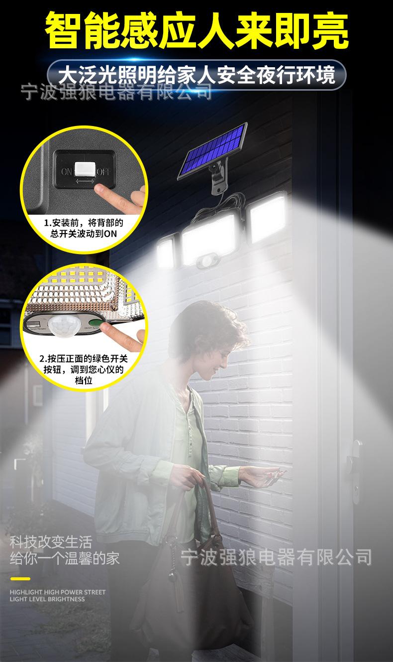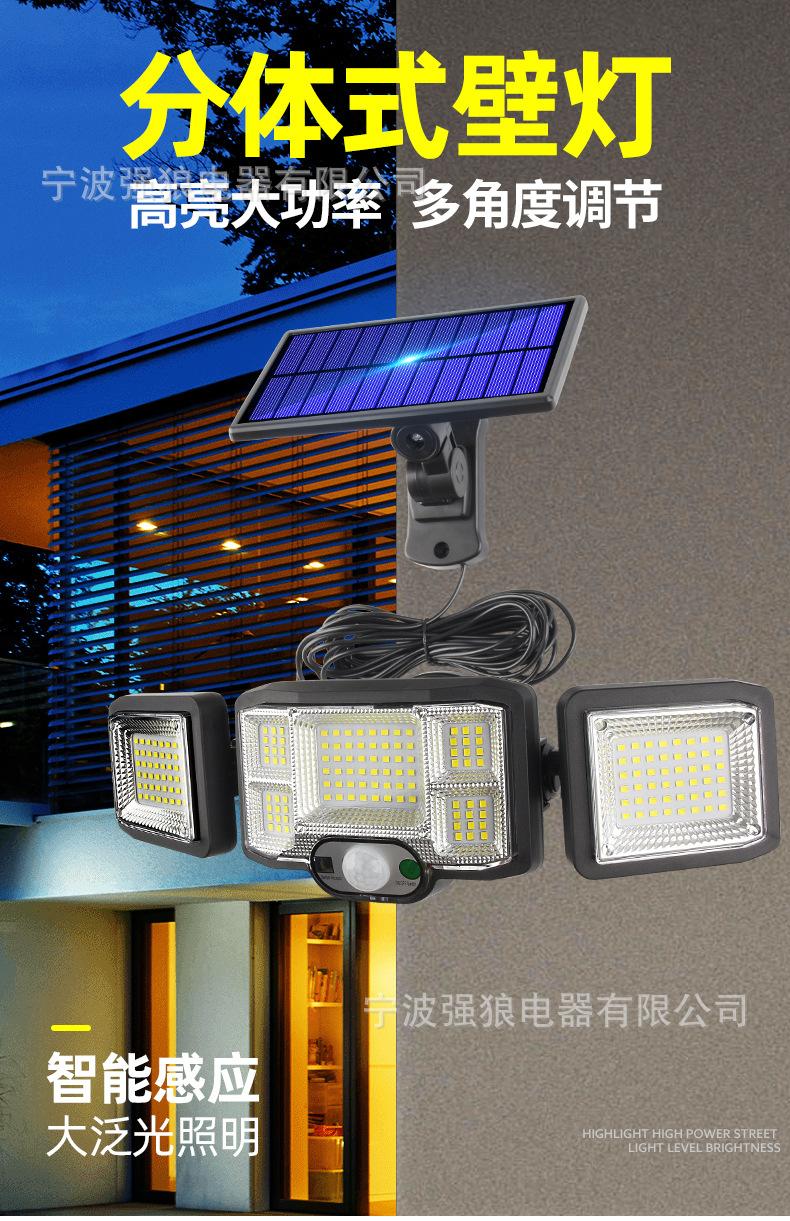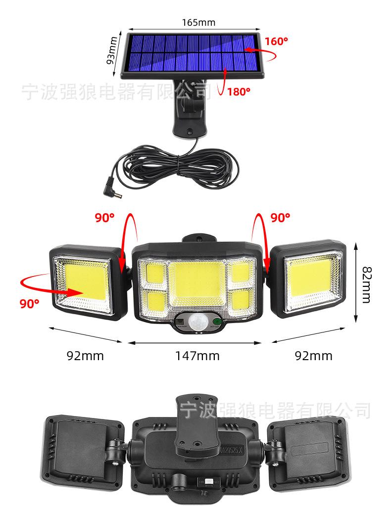 Lámpara Solar Transfronteriza de Tres Cabezales con Sensor de Cuerpo Humano Lámpara de Pared para Hogar Jardín Impermeable Iluminación de Pared Lámpara de Calle Súper Brillante