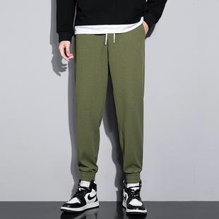 Pantalones Casuales Waffle Otoño e Invierno 2023 Pantalones Casuales Holgados de Moda para Hombre Pantalones Deportivos de Nueve Puntos con Puño