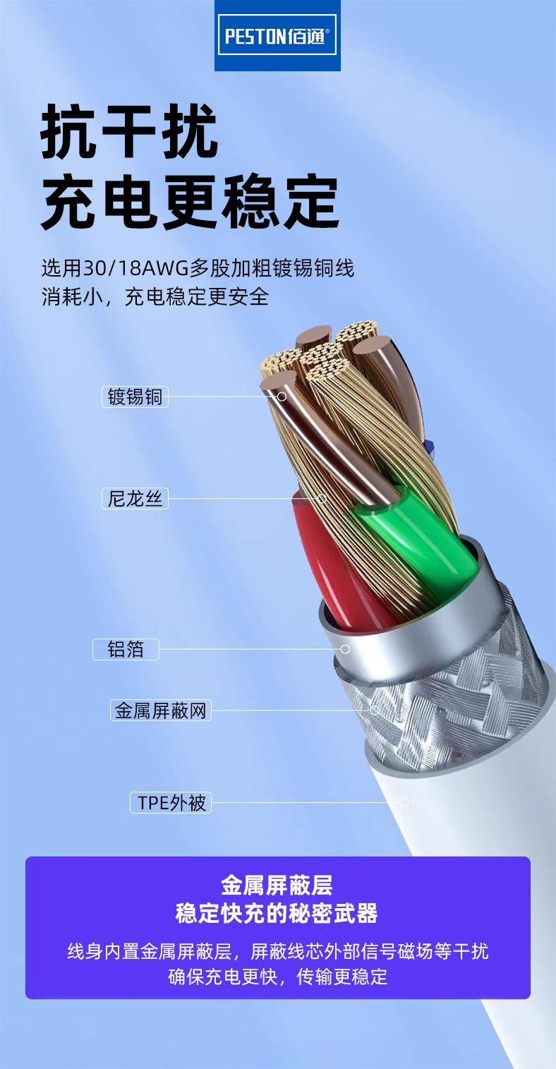 Longitud del cable de datos: unos 100 cm Características del producto: Adecuado para dispositivos de carga rápida iphpne15, con cable de datos de carga rápida PD incorporado, admite protocolo de carga rápida PD, salida de alta corriente de 20 W, carga más rápida, mecanismos de protección de seguridad múltiple incorporados, carga estable, sin daños a las baterías del teléfono móvil, carga más segura, carcasa ignífuga, seguridad garantizada。 Dongguan Xinbai Communication Equipment Co., Ltd. (PESTON) se ha especializado en la industria de accesorios digitales 3C durante muchos años. Integra I+D, producción y ventas para brindar servicios integrales a los clientes de accesorios. Cuenta con una superficie construida de más de 2000 metros cuadrados. Su actividad principal son los cables de datos y cargadores para teléfonos móviles.、energía móvil、Tarjeta de memoria、Disco U、Auriculares de teléfono、auricular Bluetooth、Auriculares MP3、lector de tarjetas、Altavoz Bluetooth、palo para selfies、película protectora、Película de vidrio templado、Teléfono móvilfunda protectora,Teléfono móvilEstuches de cuero y otros accesorios digitales 3C. La empresa ha experimentado un rápido crecimiento desde su fundación. Actualmente cuenta con más de 100 empleados, dos bases logísticas y colabora con diversas empresas de mensajería exprés y logística para garantizar la entrega puntual tras la compra y ofrecer a los clientes servicios integrales de preventa y posventa. Cuenta con cuatro marcas propias, más de 30 agentes de marca, proveedores de accesorios digitales 3C y un centro de venta directa al por mayor en Dongguan. PESTON cuenta con plantas de producción en Shenzhen y Dongguan, así como con su propio equipo de I+D. Cada mes, se lanzan al mercado cerca de 30 nuevos modelos, lo que consolida un negocio integral que abarca desde la I+D hasta la fabricación y la venta vertical. Modelo, calidad fiable y un servicio integral. PESTON se centra en las operaciones online y combina las operaciones offline. Actualmente, cuenta con cerca de 100 distribuidores online y decenas de tiendas físicas en ciudades grandes, medianas y pequeñas.