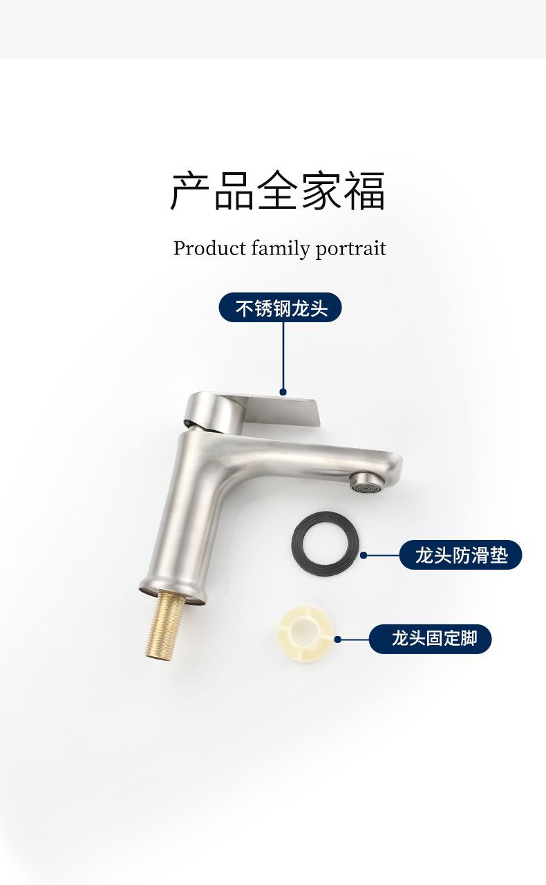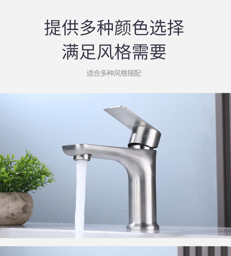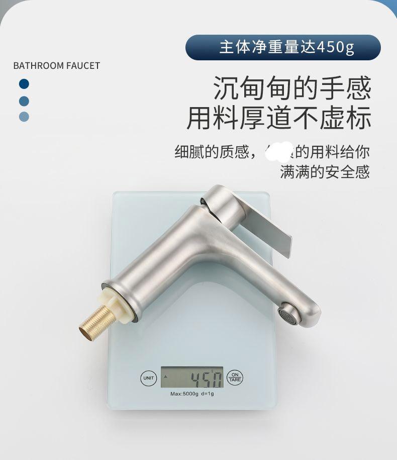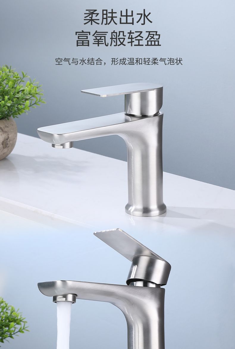 Grifo de lavabo de acero inoxidable 304, grifo de lavabo de baño de un solo orificio, grifo de lavabo de baño, venta al por mayor