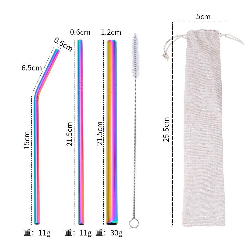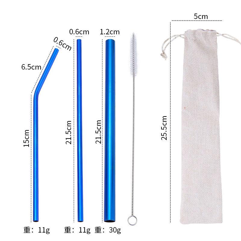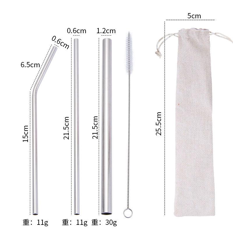Juego de Popotes Creativos de Acero Inoxidable 304 Bolsa de Tela Popote de Metal Juego Portátil Restaurante Juego de Popotes para Bebidas