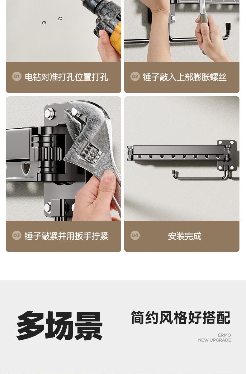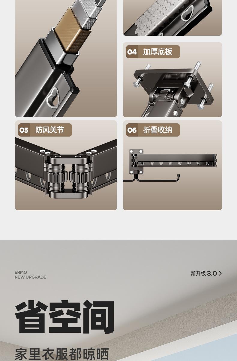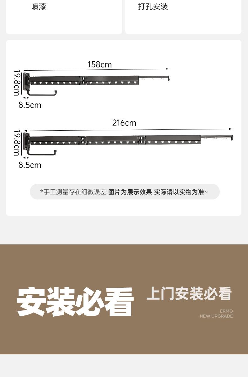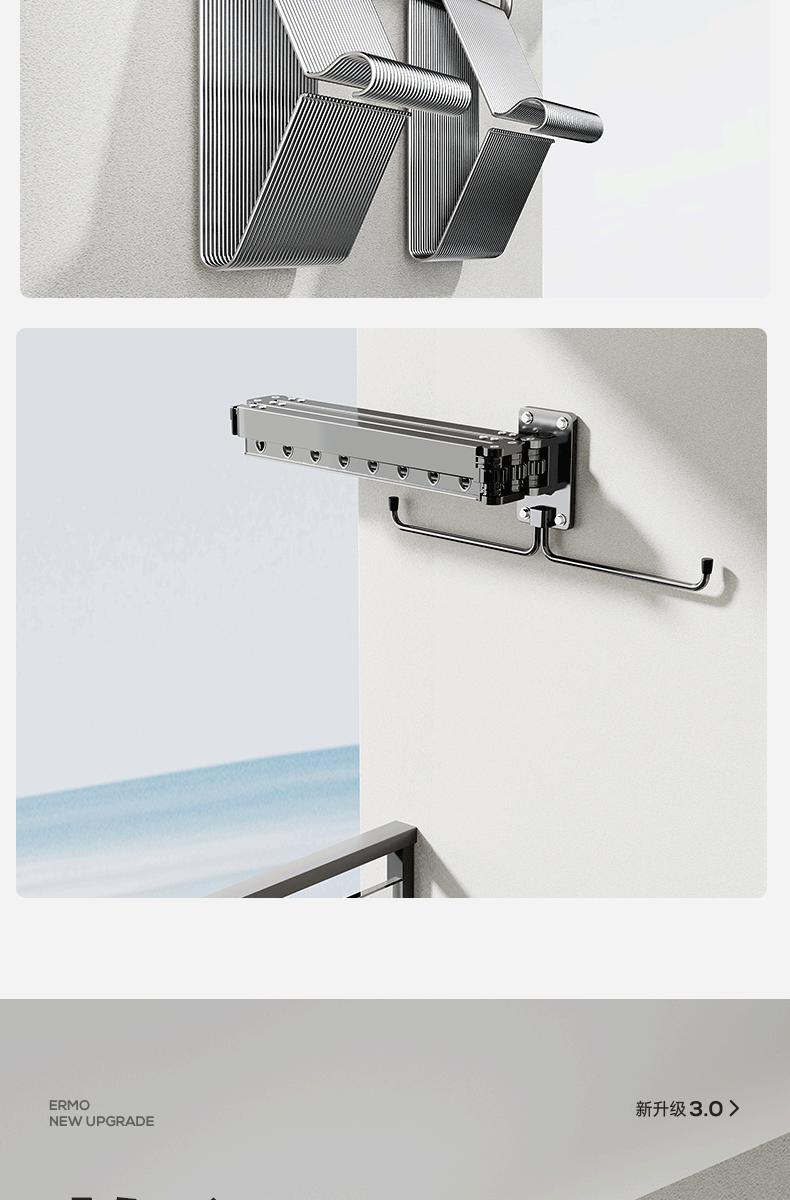 Tendedero Telescópico Plegable Balcón Hogar Barra para Secar Ropa Edredón Artefacto Tendedero Invisible Montado en la Pared