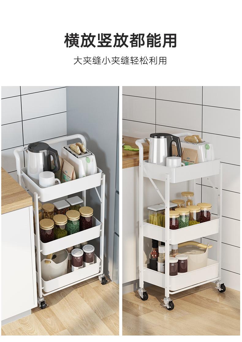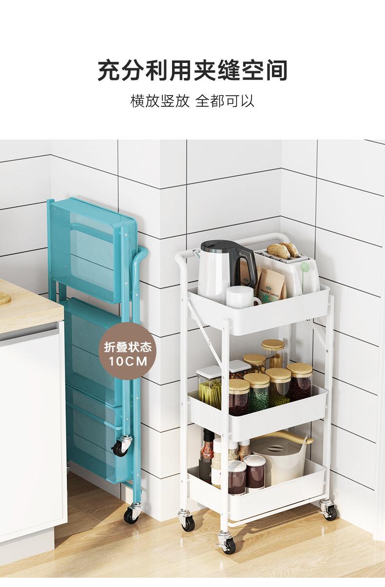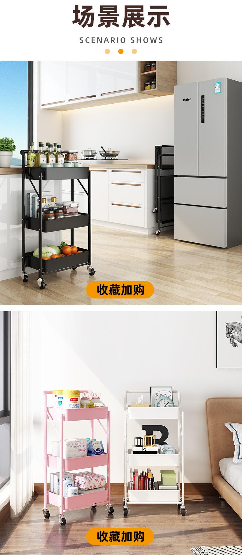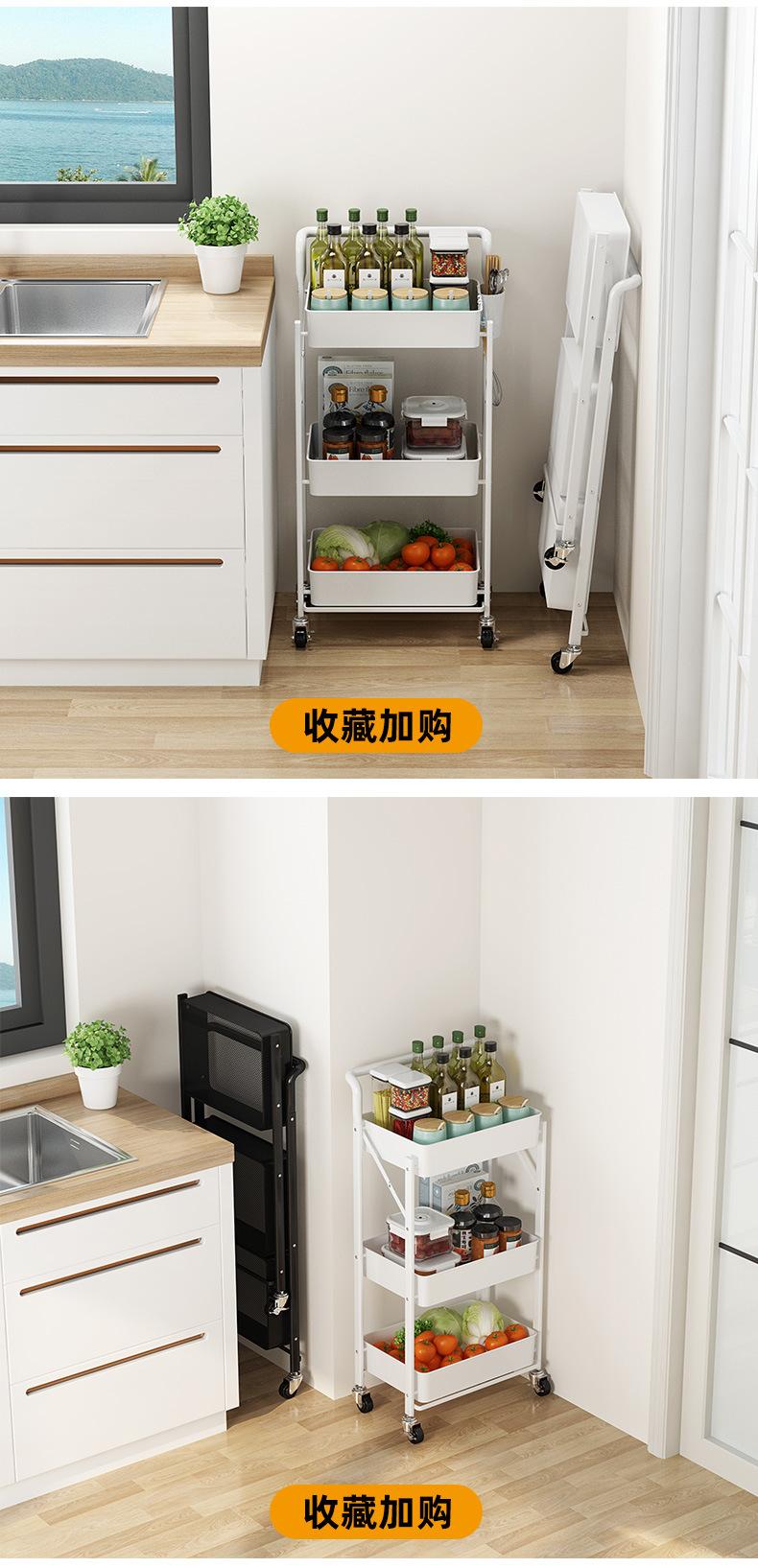 Carrito de almacenamiento retráctil móvil, estante de almacenamiento de cocina plegable paralelo de 180 grados, carrito de tres capas de múltiples escenas