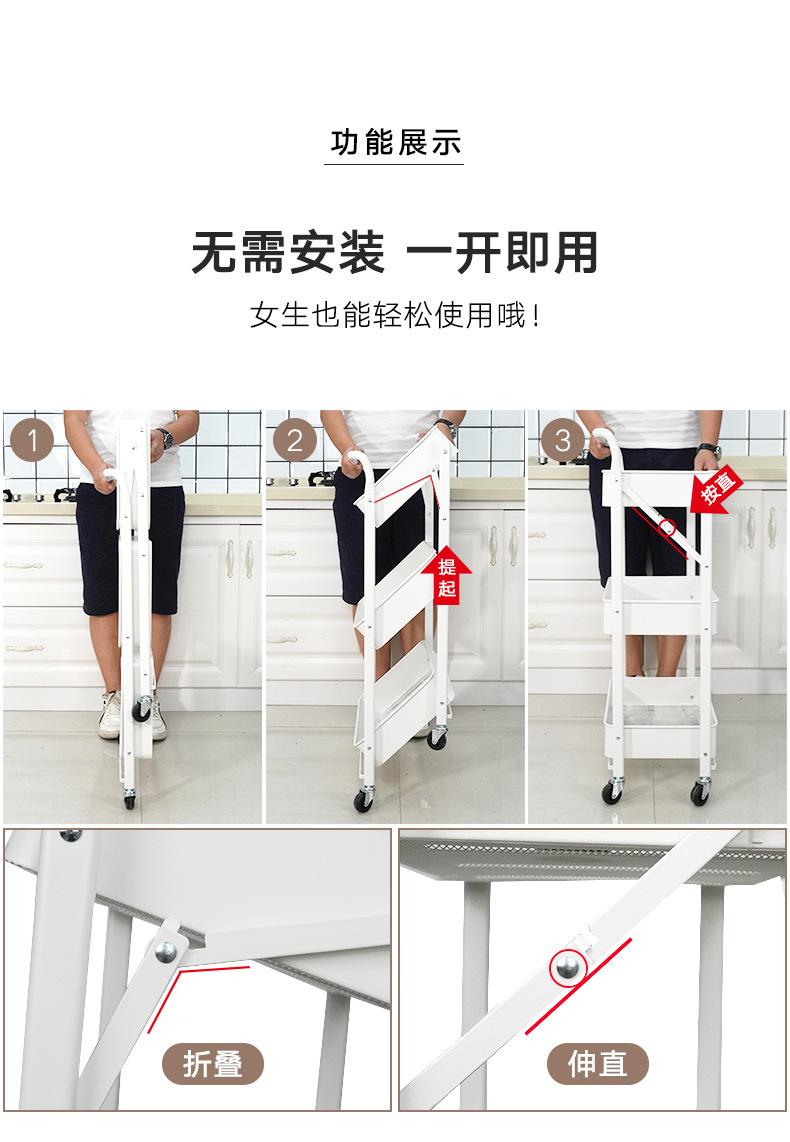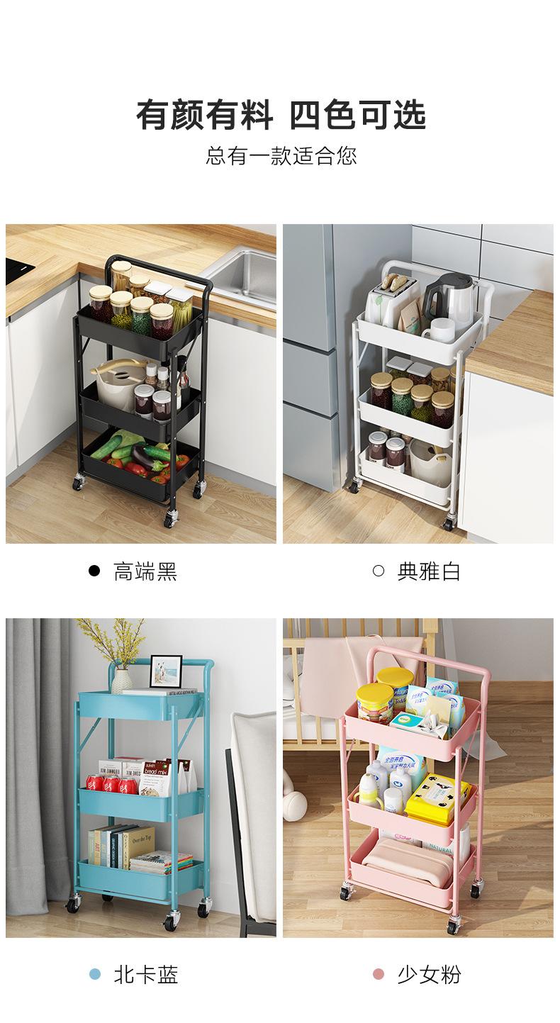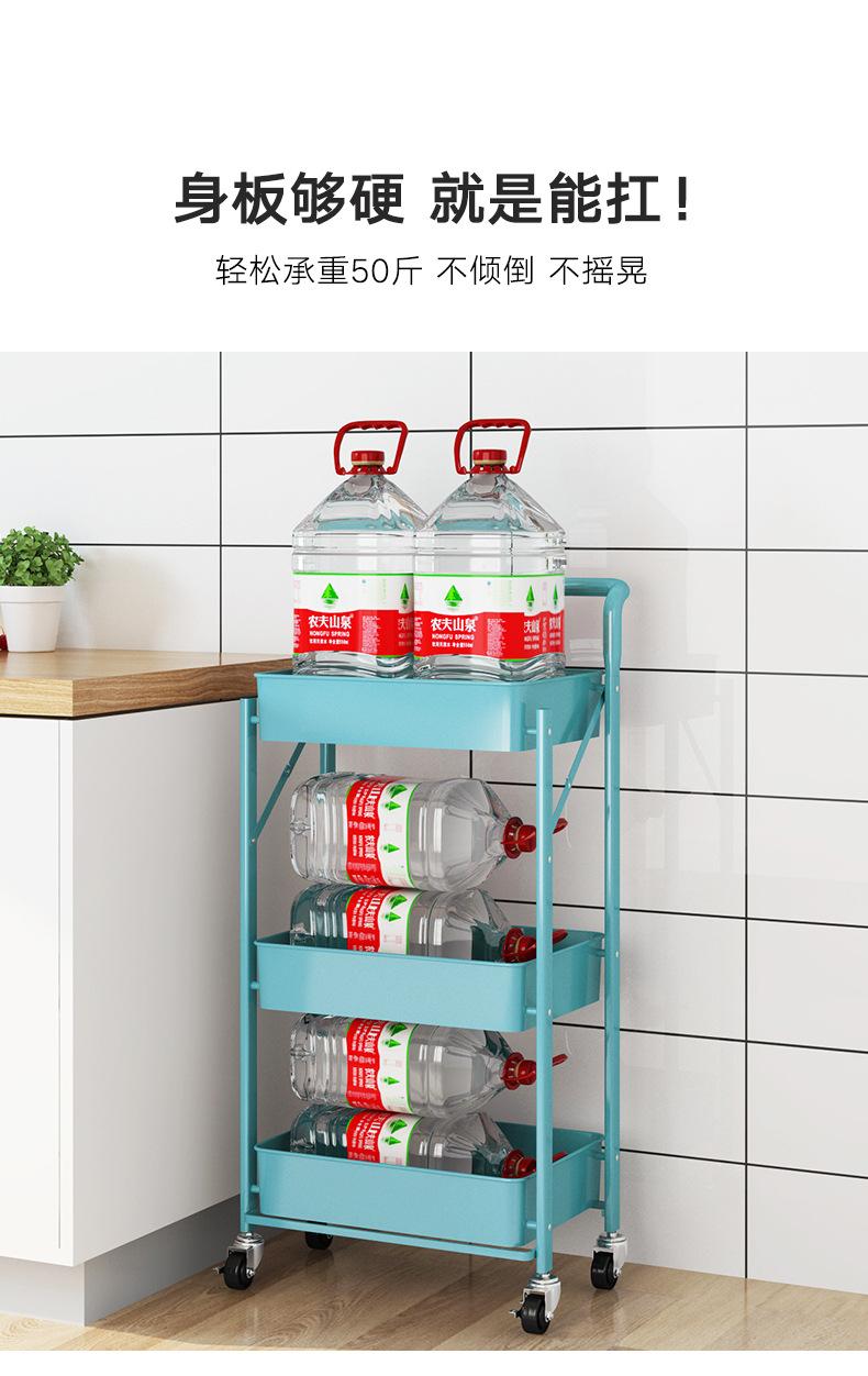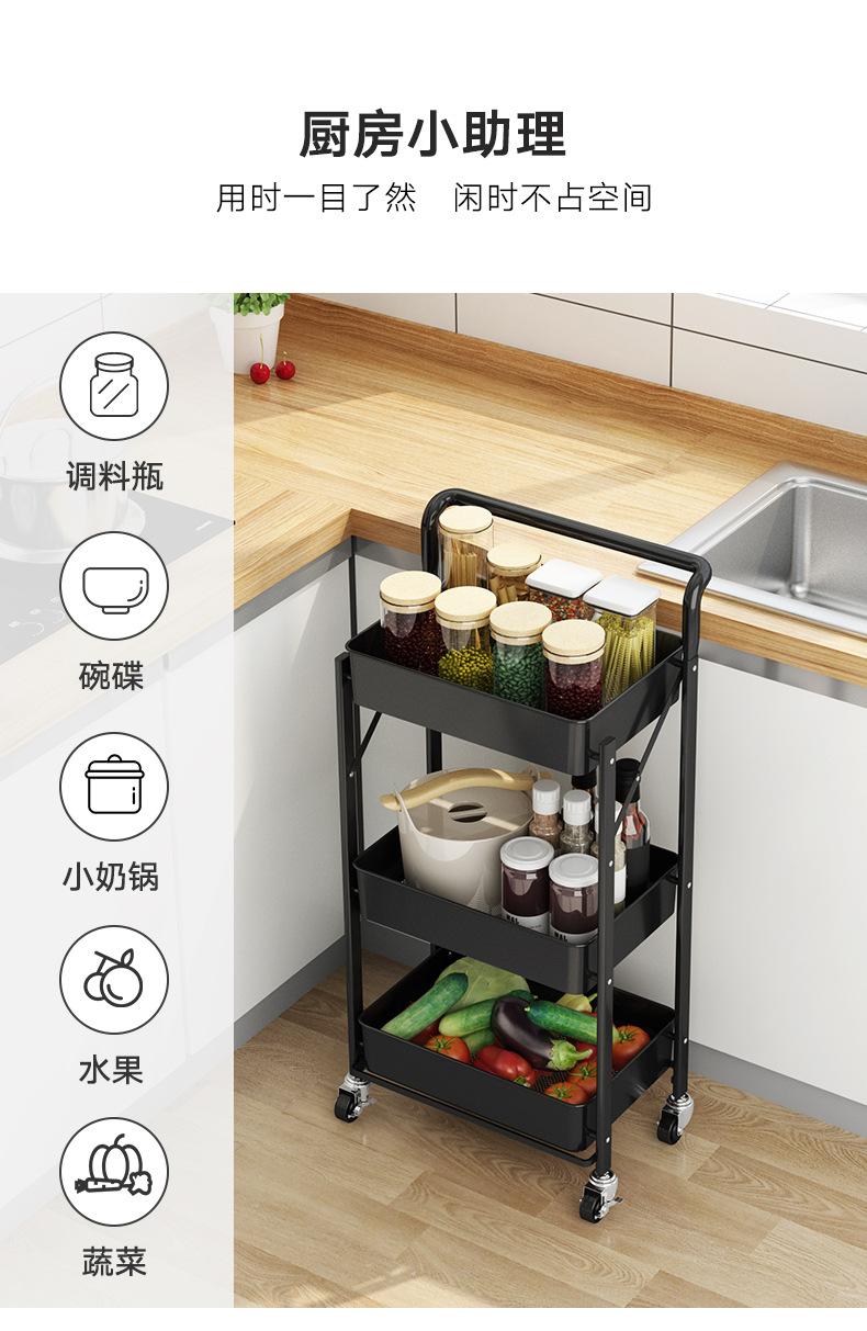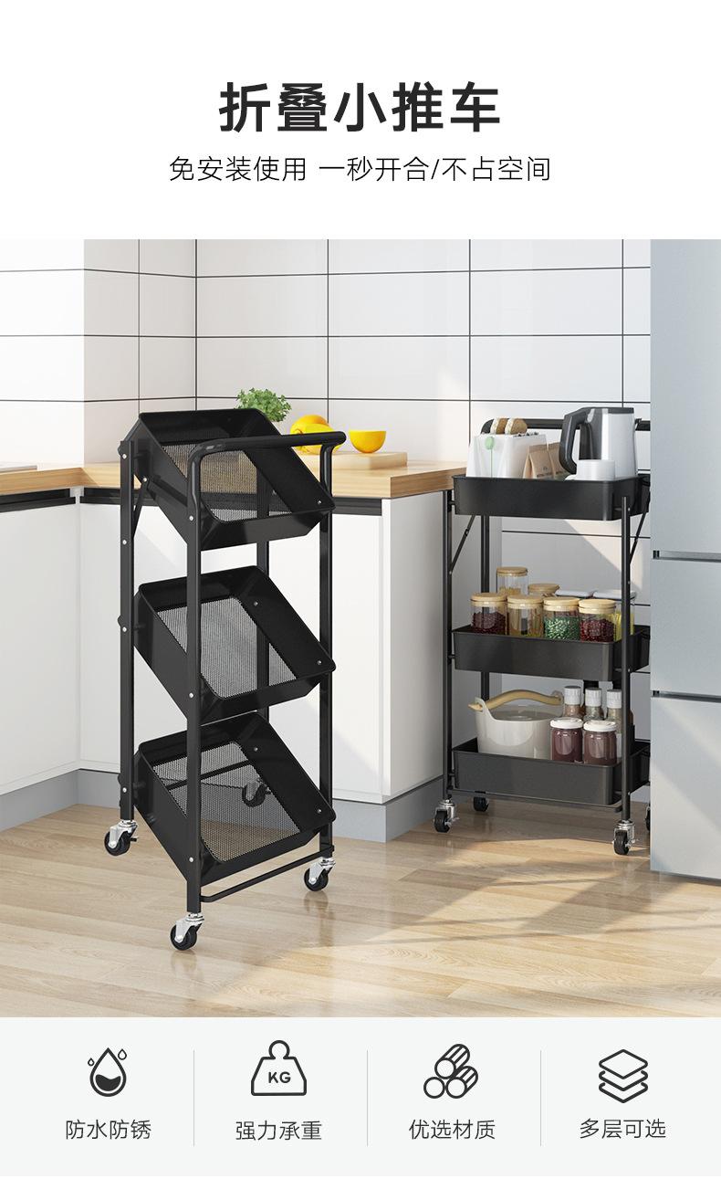 Carrito de almacenamiento retráctil móvil, estante de almacenamiento de cocina plegable paralelo de 180 grados, carrito de tres capas de múltiples escenas