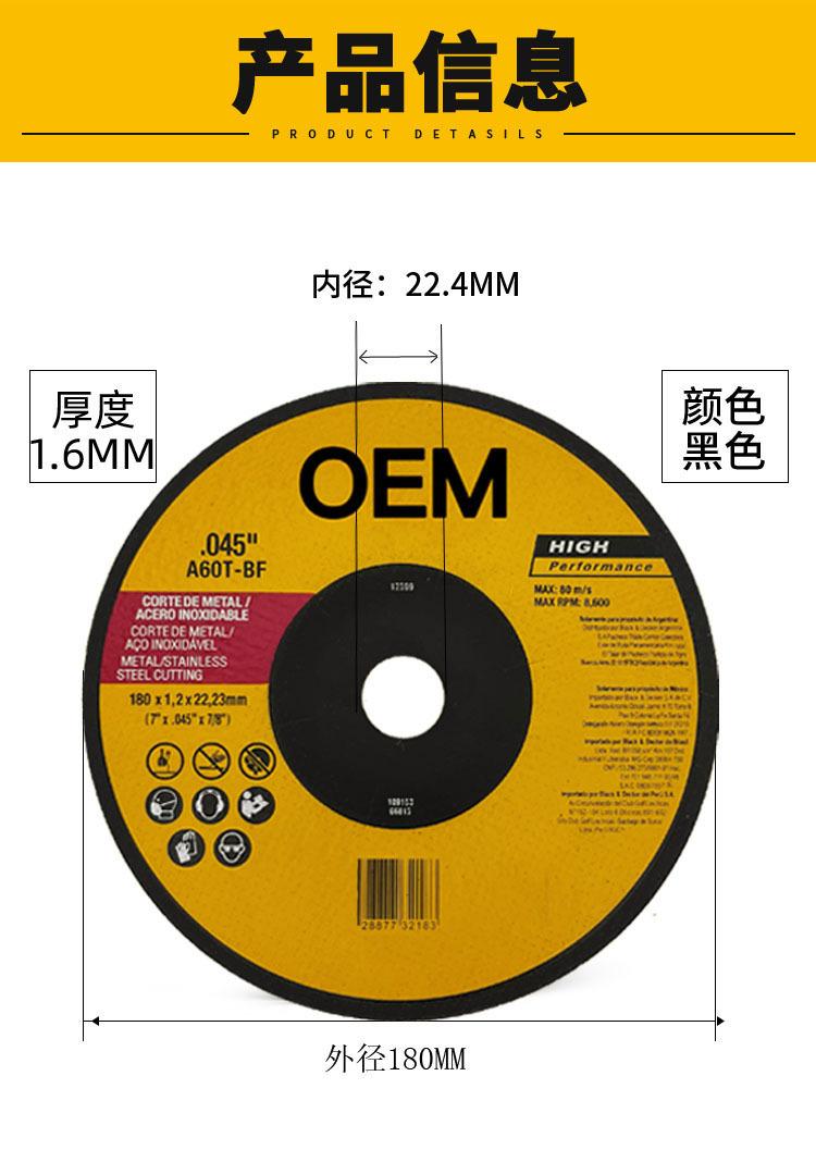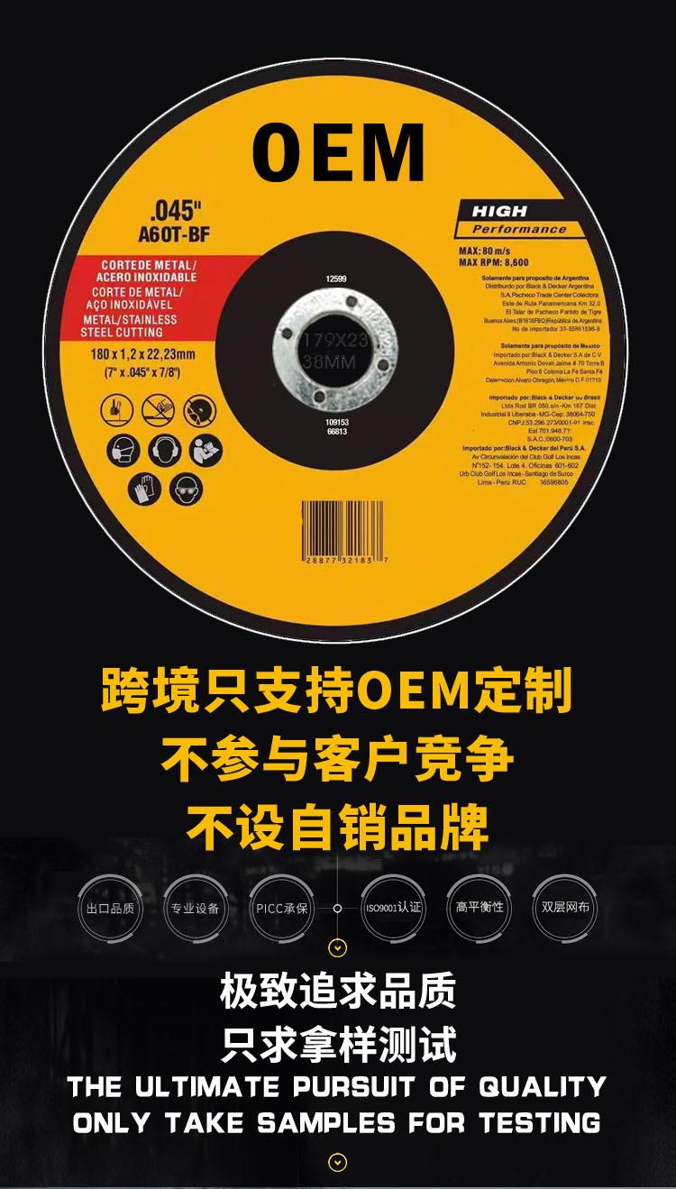 Oem Personalizado 180mm Metal Acero Inoxidable Muela Disco de Corte para Máquina de Corte de Acero Inoxidable