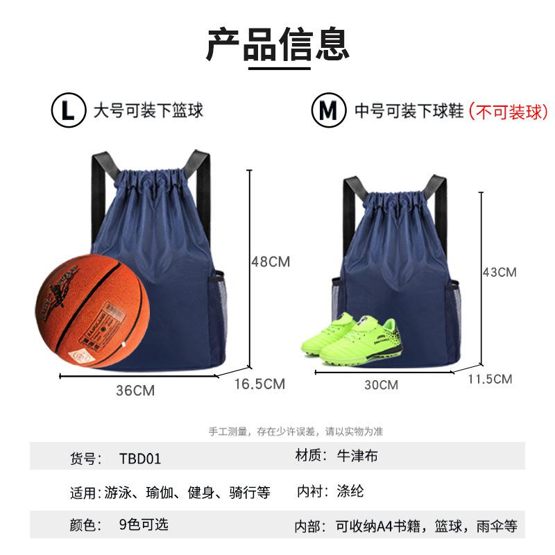 Mochila con cordón ajustable, bolsa de almacenamiento de bolsillo, mochila impermeable para entrenamiento deportivo y fitness, logotipo de la fábrica, venta directa.